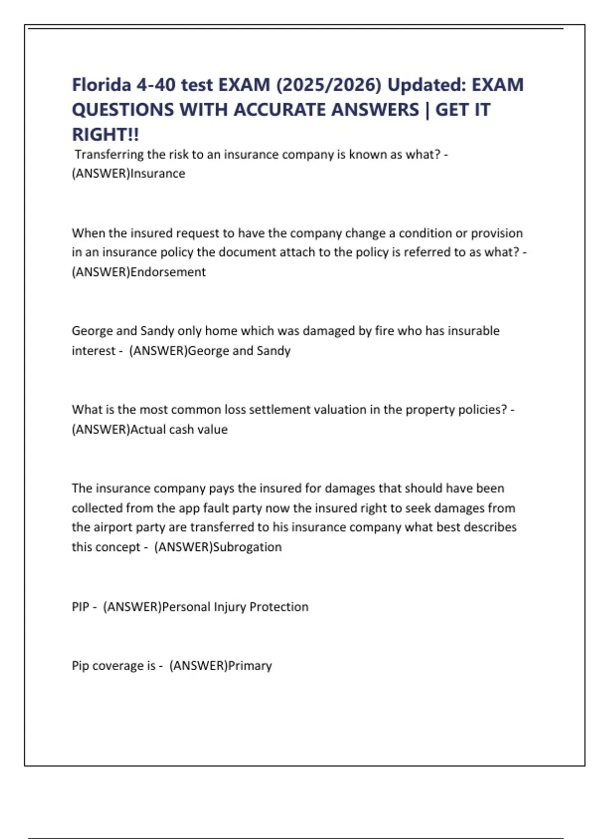 Florida 4-40 test EXAM (2025/2026) Updated: EXAM