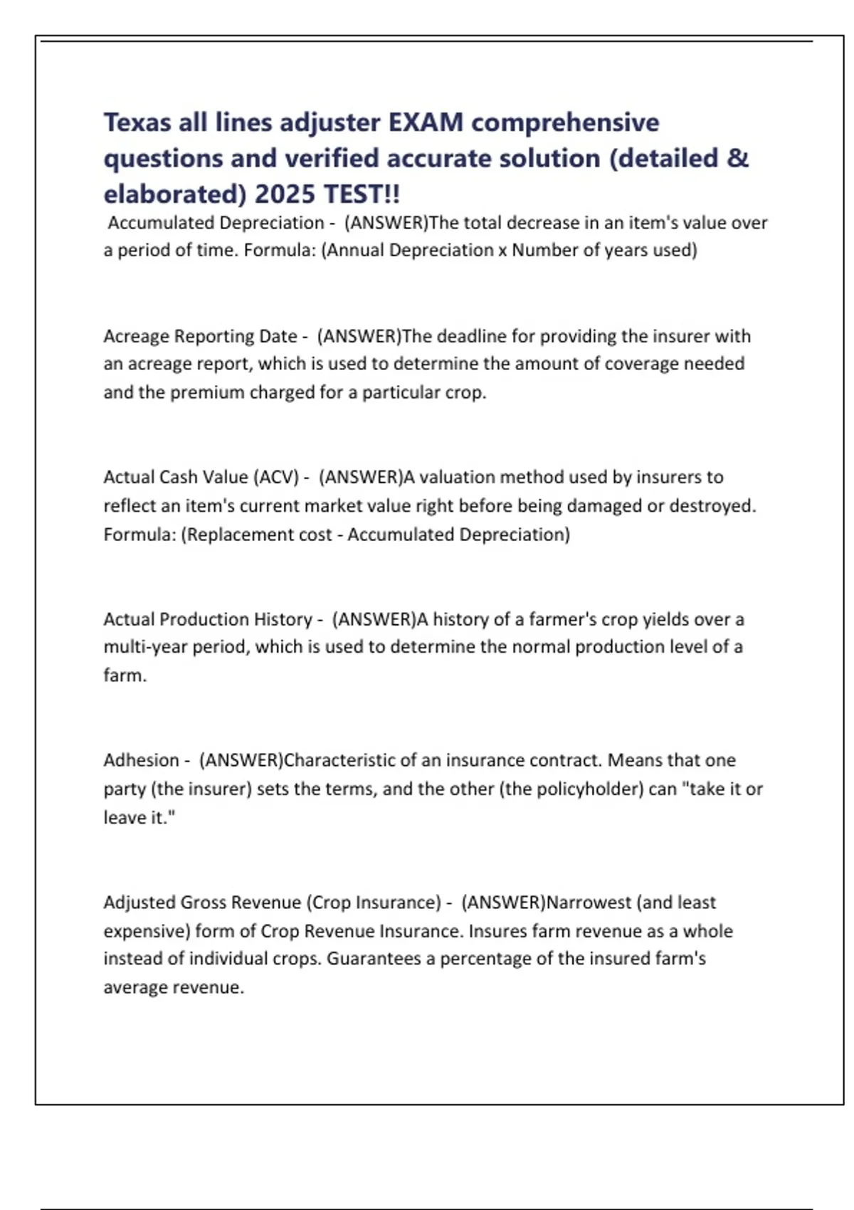 Texas all lines adjuster EXAM comprehensive