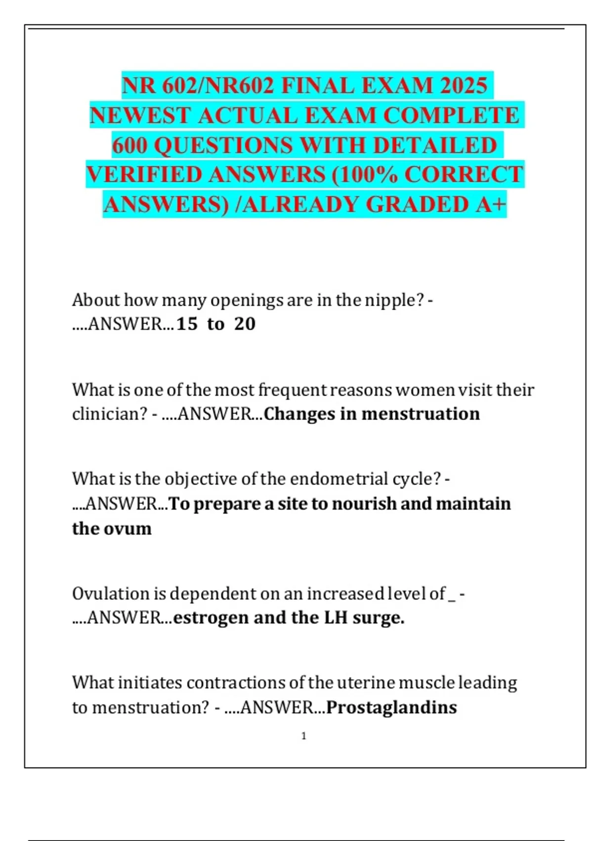 NR 602/NR602 FINAL EXAM 2025 NEWEST ACTUAL EXAM COMPLETE 600 QUESTIONS WITH DETAILED VERIFIED ANSWERS (100% CORRECT ANSWERS) /ALREADY GRADED A+