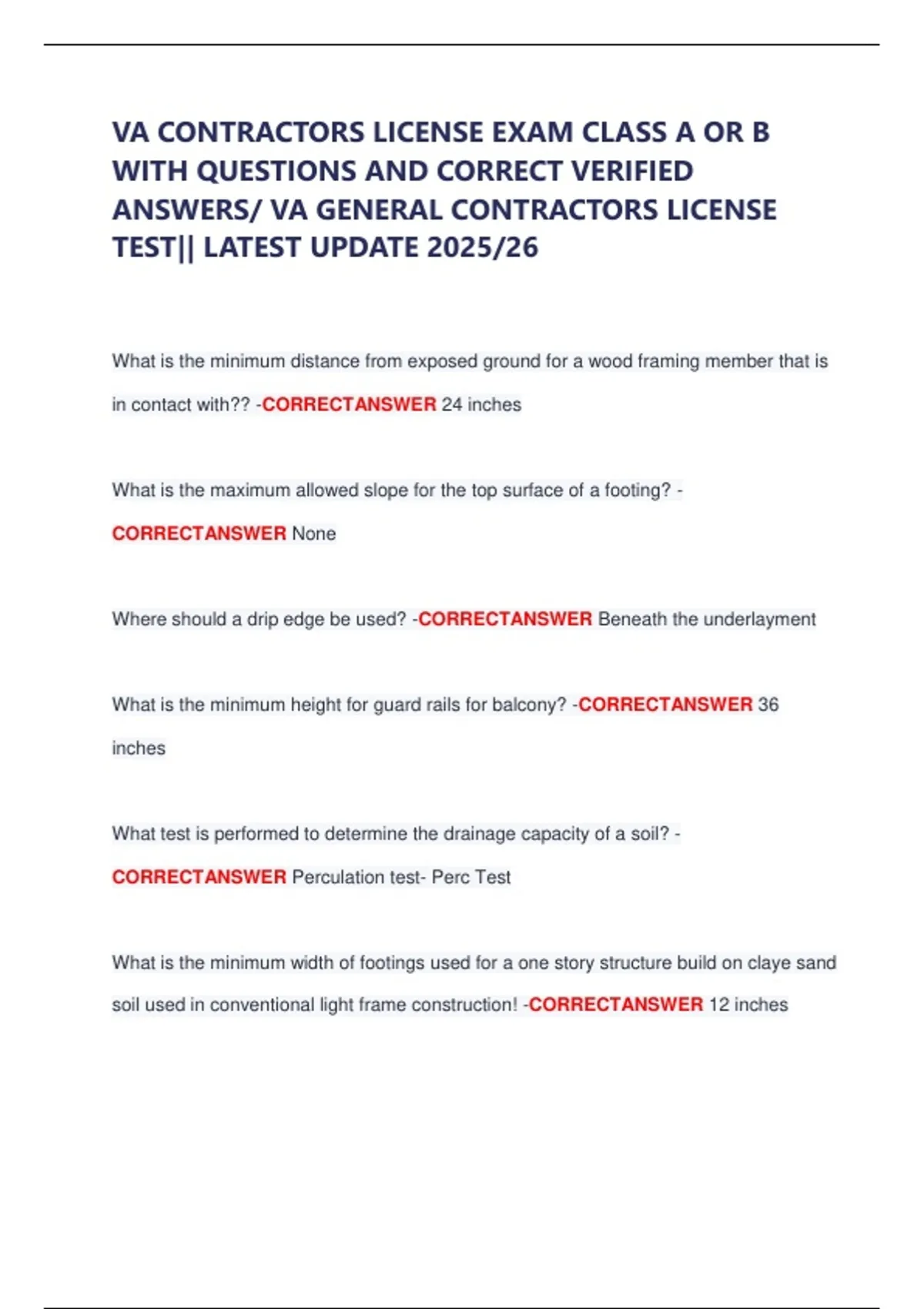 VA CONTRACTORS LICENSE EXAM CLASS A OR B