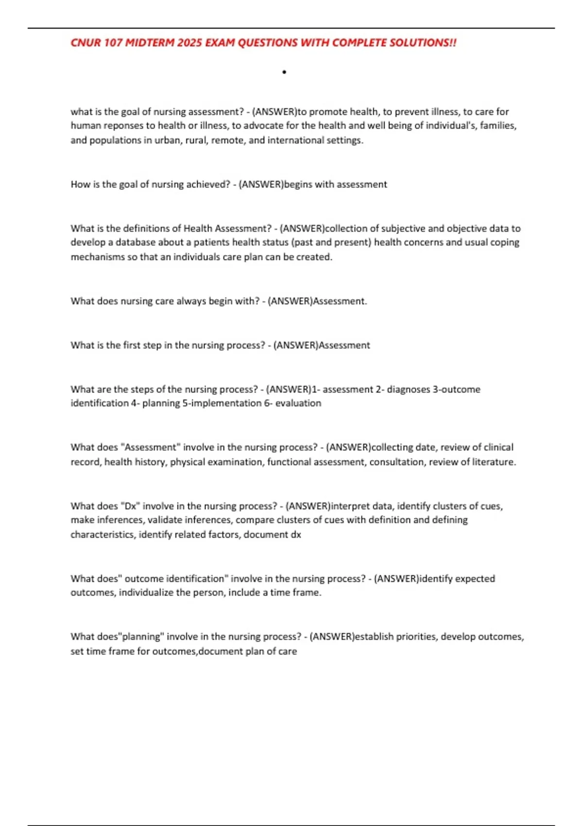 , CNUR 107 MIDTERM 2025 EXAM QUESTIONS WITH COMPLETE SOLUTIONS!!