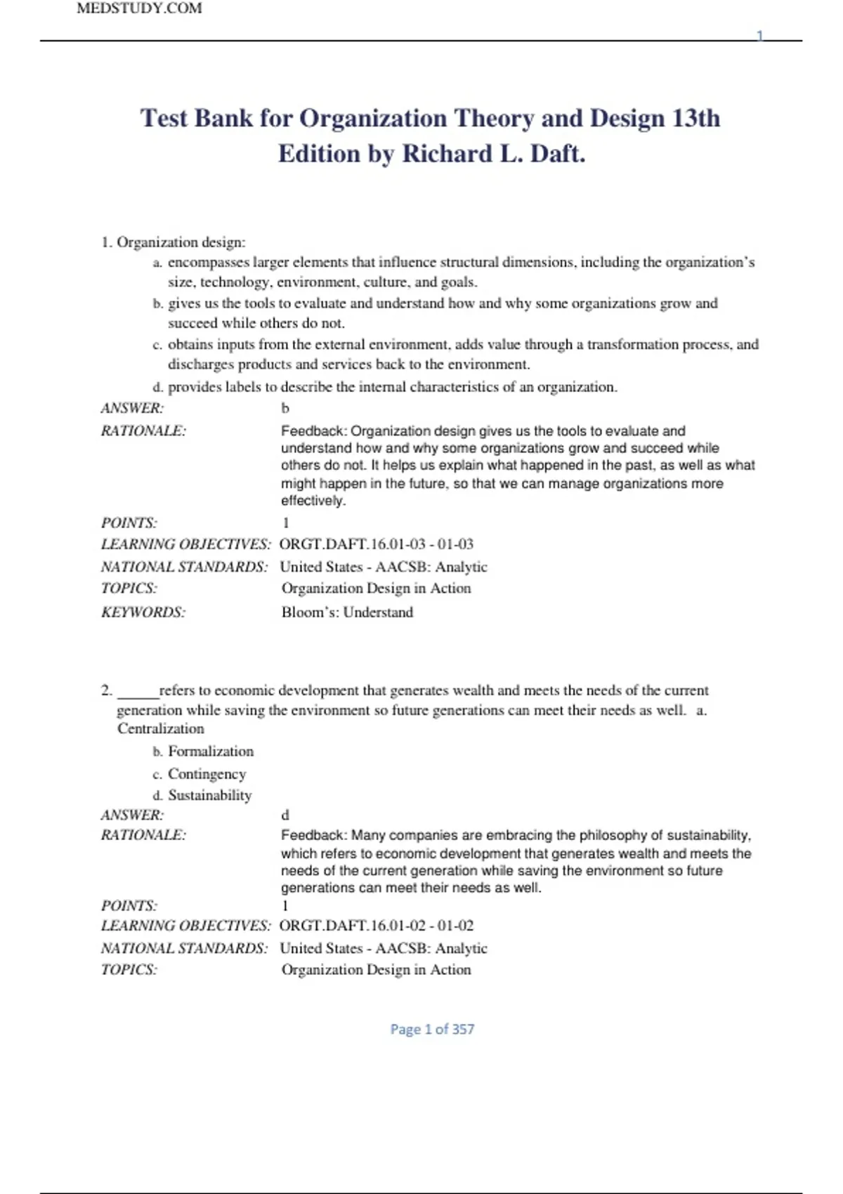 Test Bank For Organization Theory & Design 13th Edition by Richard Daft||ISBN:9780357445143