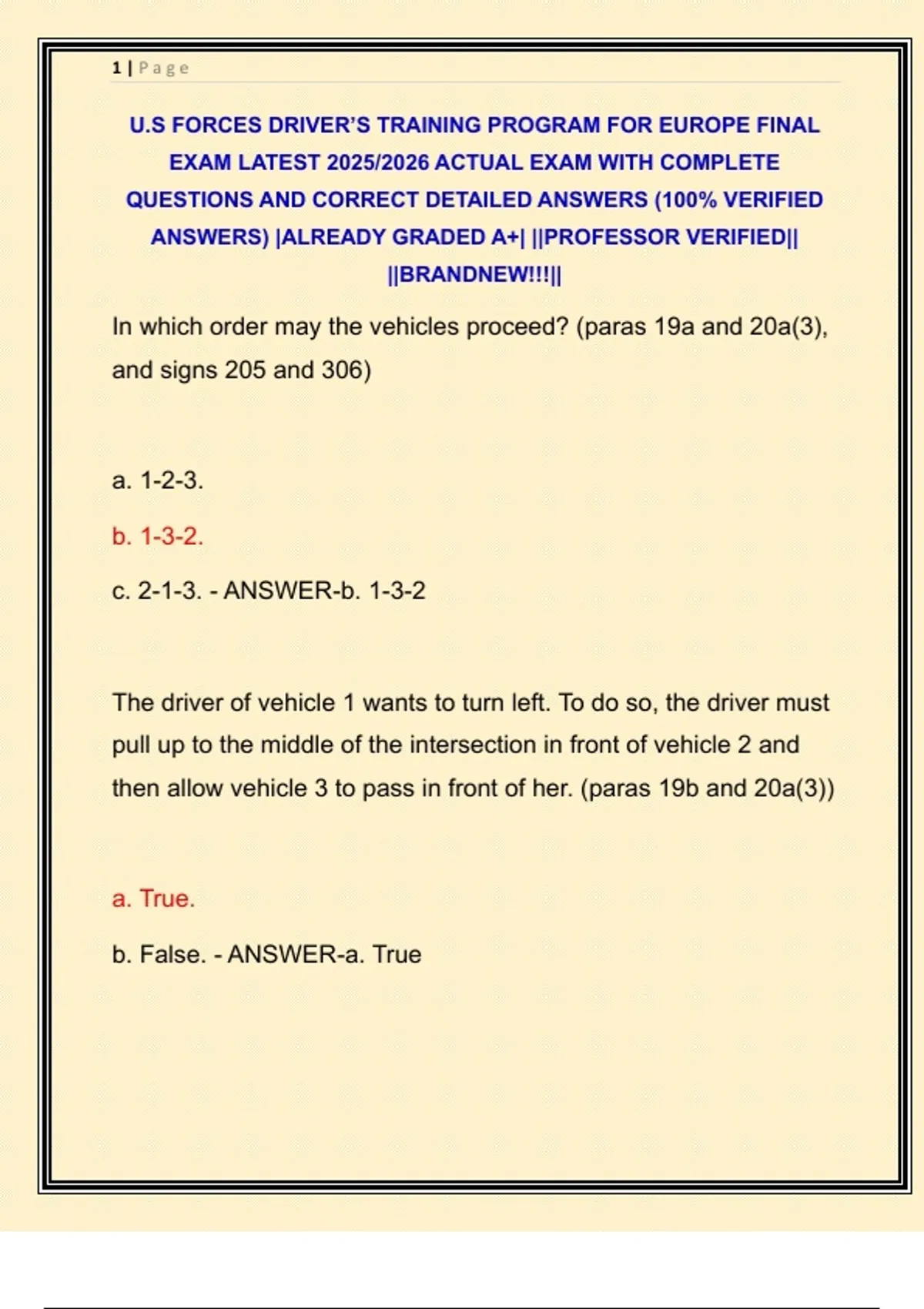 U.S FORCES DRIVER’S TRAINING PROGRAM FOR EUROPE FINAL EXAM LATEST 2025/2026 ACTUAL EXAM WITH COMPLETE QUESTIONS AND CORRECT DETAILED ANSWERS (100% VERIFIED ANSWERS) |ALREADY GRADED A+| ||PROFESSOR VERIFIED|| ||BRANDNEW!!!||
