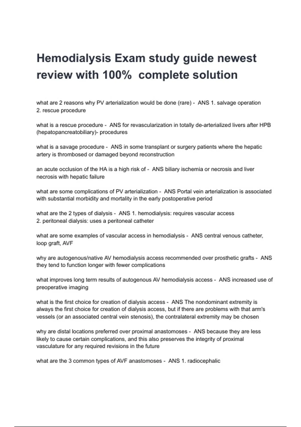 Hemodialysis Exam study guide newest review with 100% complete solution