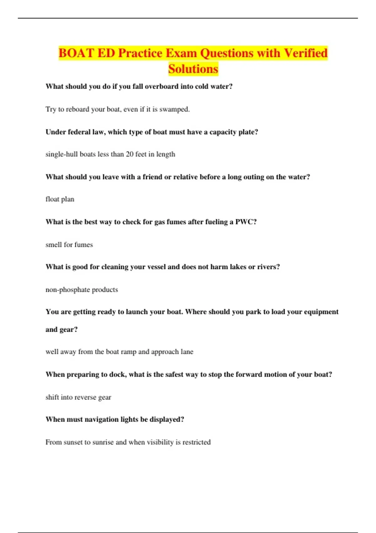 BOAT ED Practice Exam Questions with Verified