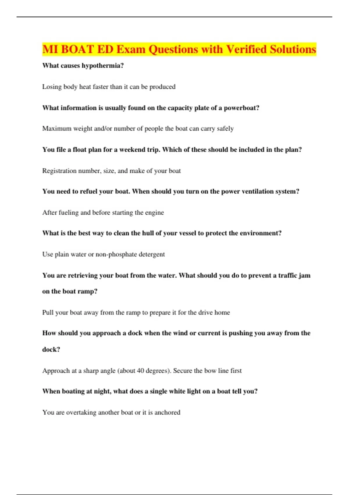 MI BOAT ED Exam Questions with Verified Solutions