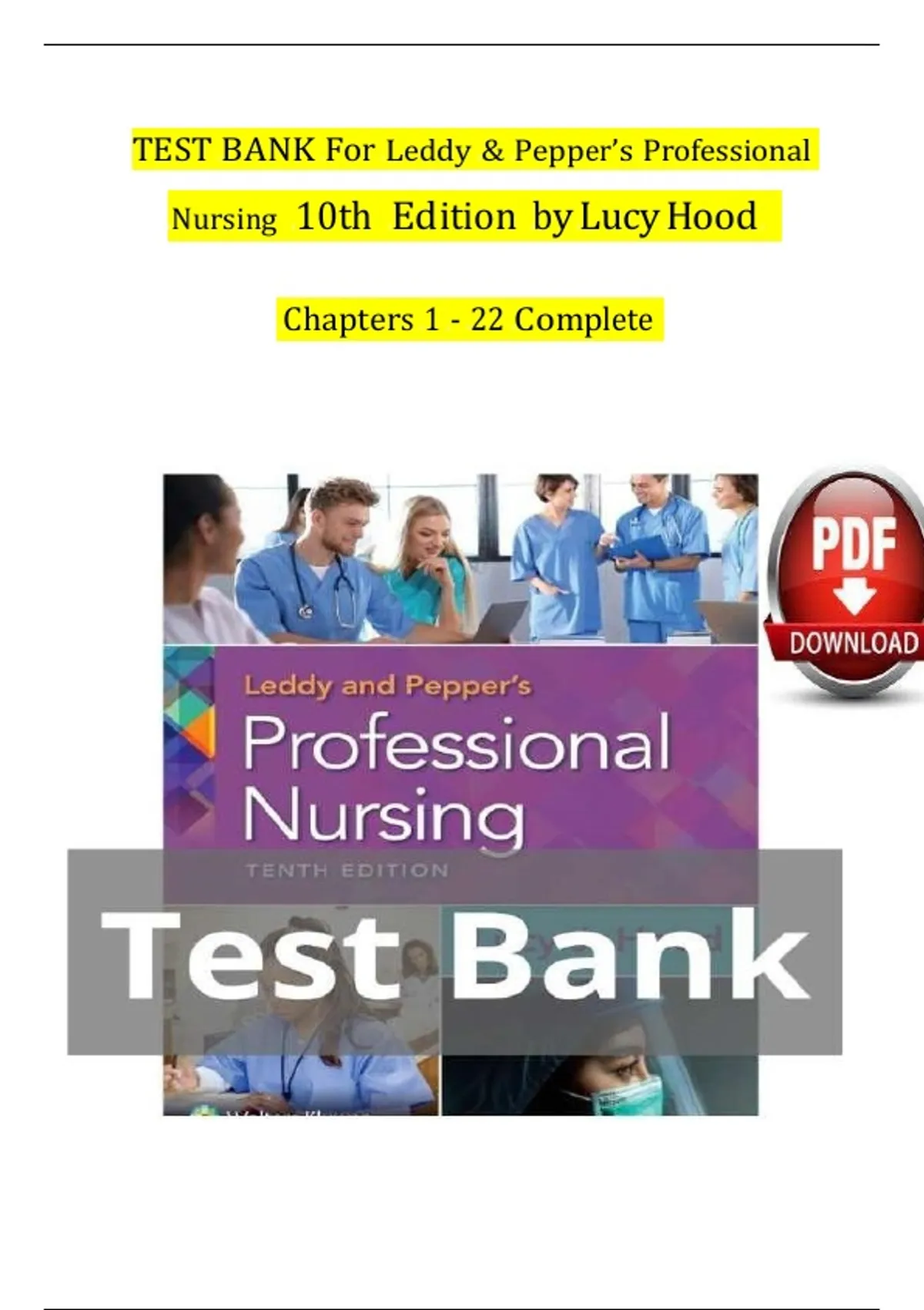 Test Bank For Leddy & Pepper’s Professional Nursing, 10th Edition by Lucy Hood, All Chapters 1 - 22 LATEST 2025