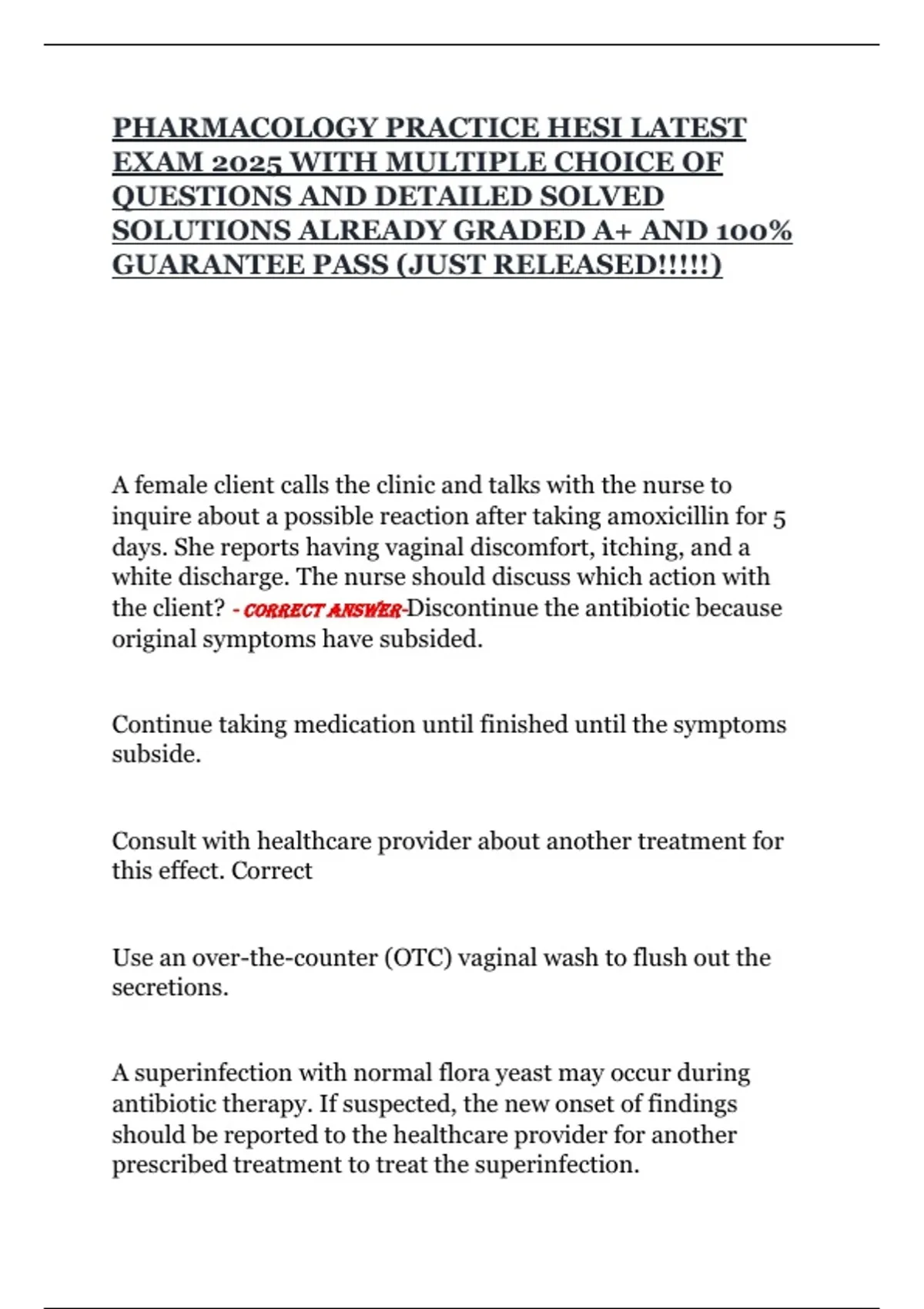 the client? - CORRECT ANSWER-Discontinue the antibiotic because
