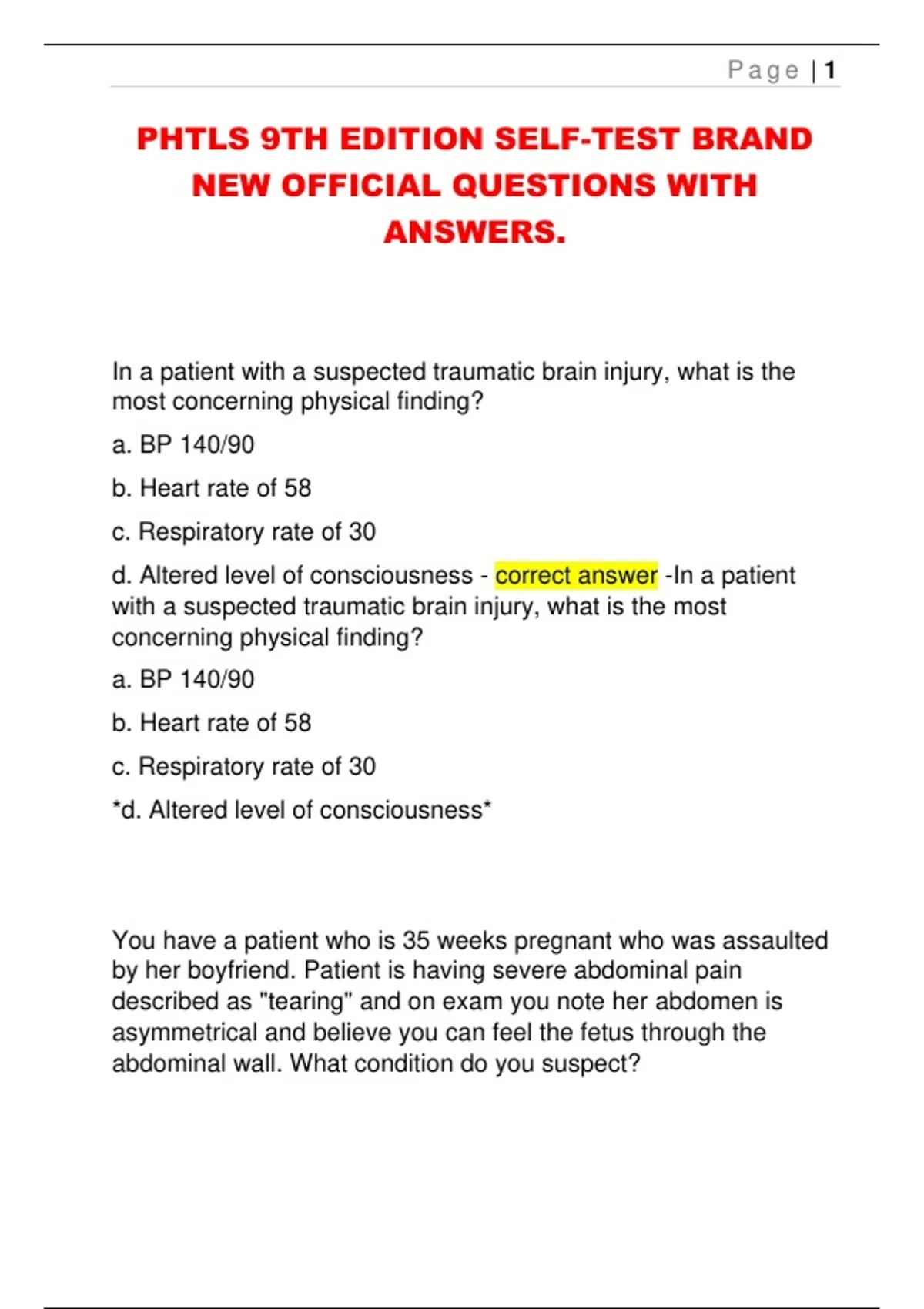 PHTLS 9TH EDITION SELF-TEST BRAND