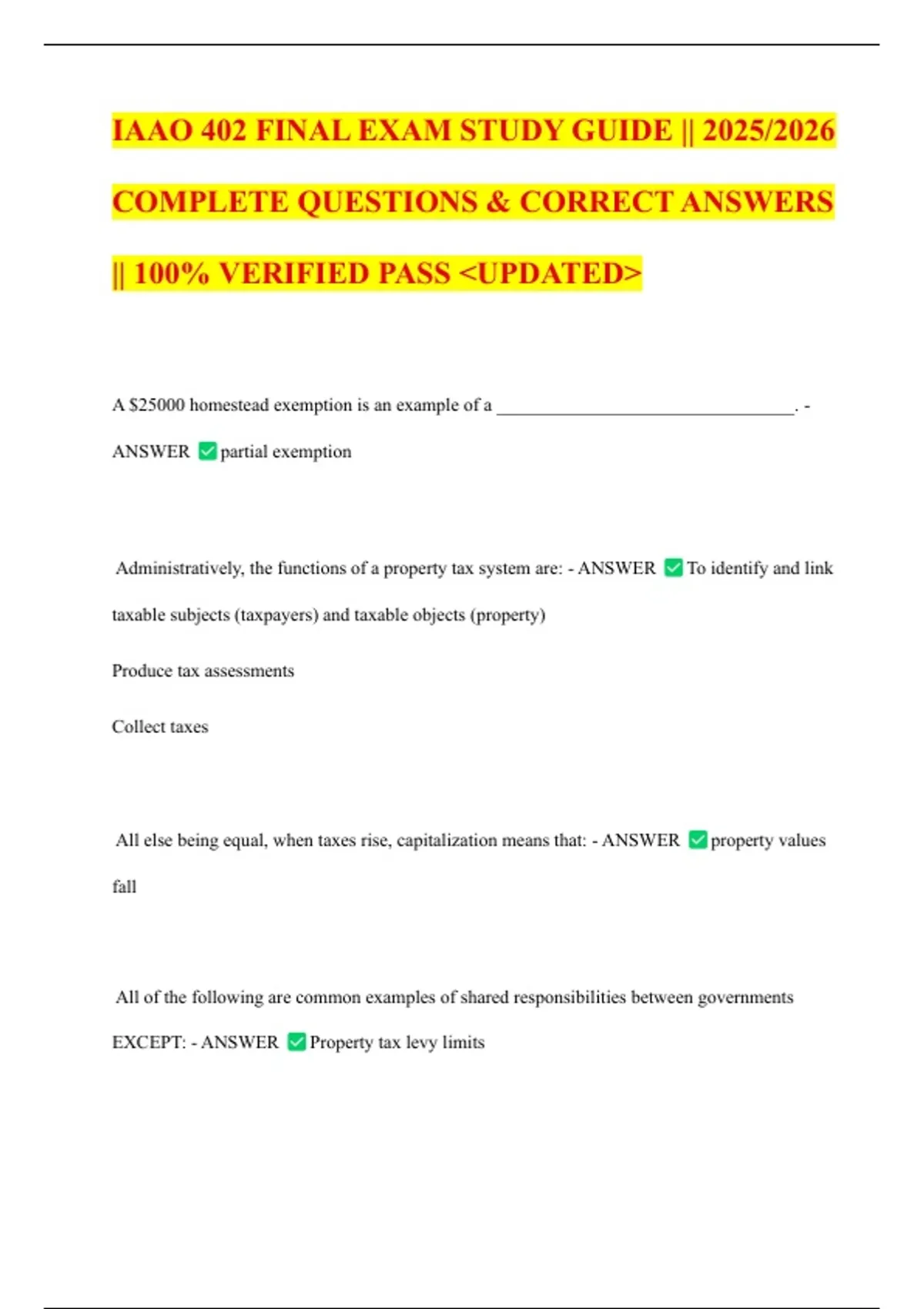 IAAO 402 FINAL EXAM STUDY GUIDE || 2025/2026 COMPLETE QUESTIONS & CORRECT ANSWERS || 100% VERIFIED PASS UPDATED