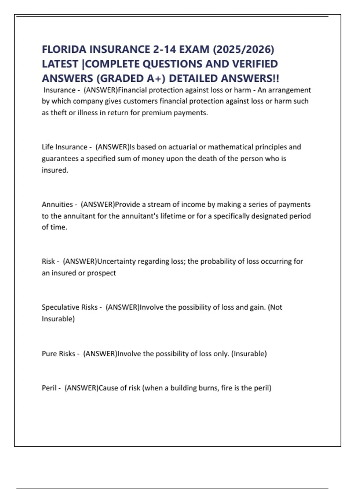 FLORIDA INSURANCE 2-14 EXAM (2025/2026)