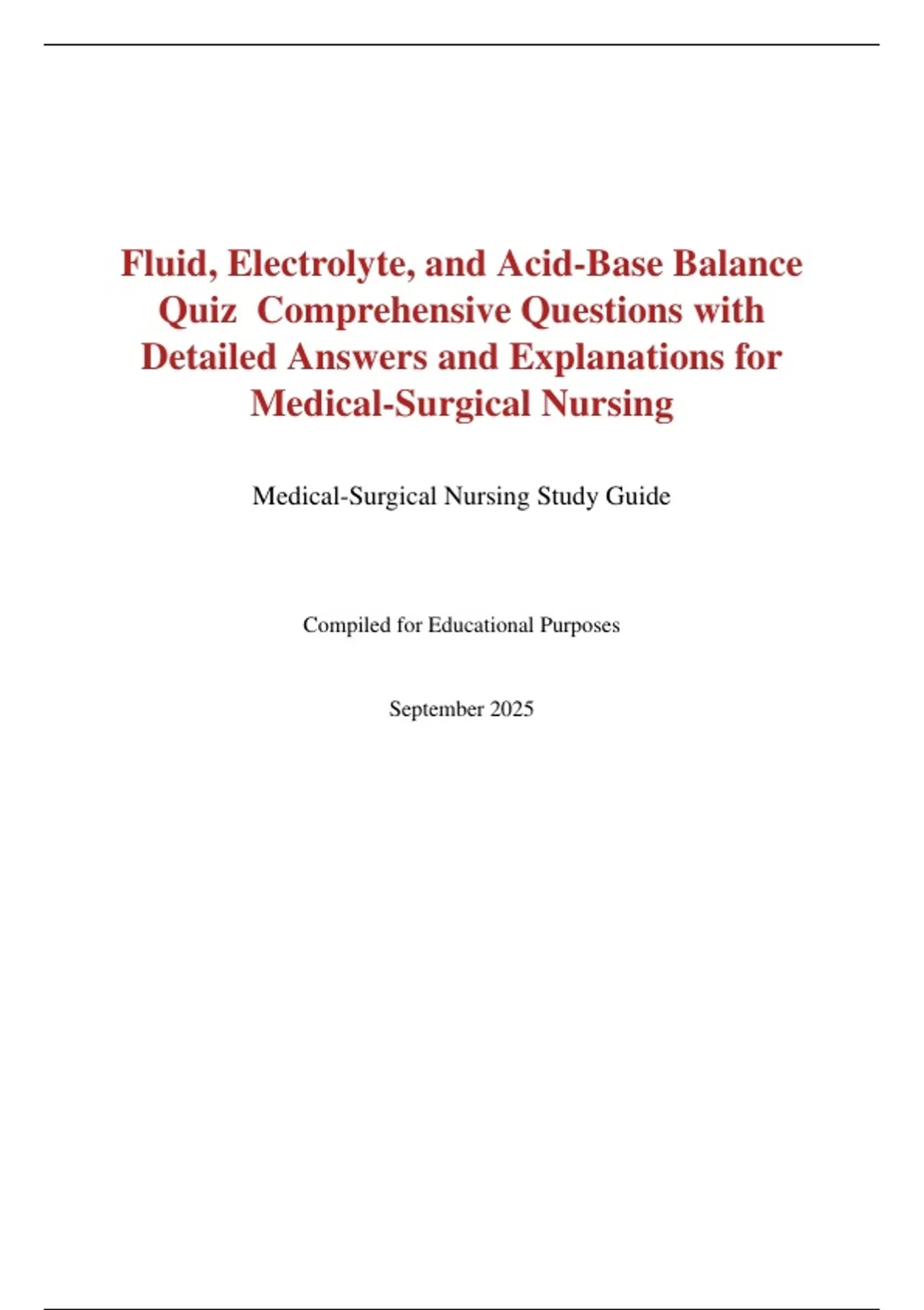This document provides a comprehensive quiz on fluid, electrolyte, and acid-base balance,