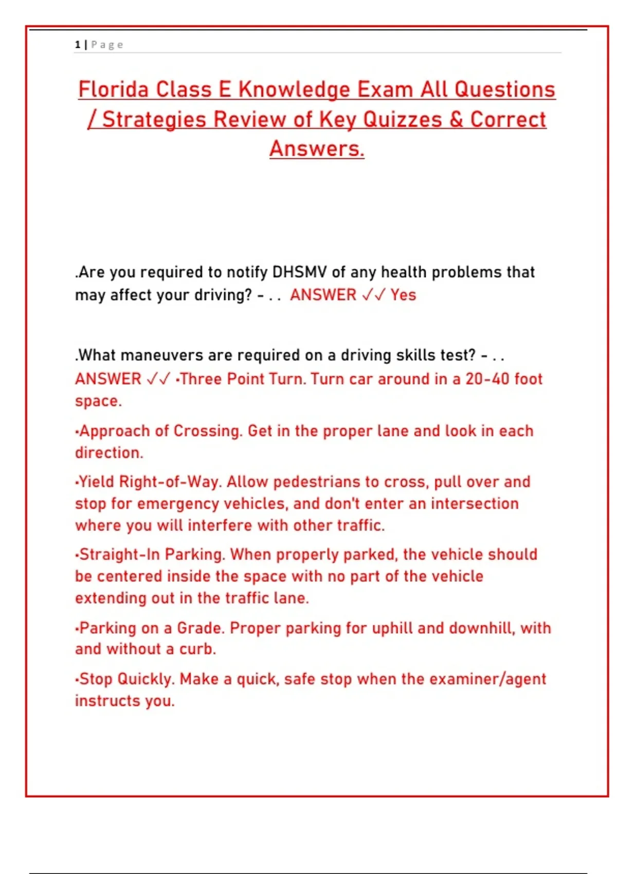 Prepare for the Florida Class E Knowledge Exam with our complete guide to every question and official answer. Get expert strategies, key maneuvers, and traffic laws explained clearly. Perfect for first-time drivers and those renewing their license. Study smarter and pass your Florida DMV test with confidence!