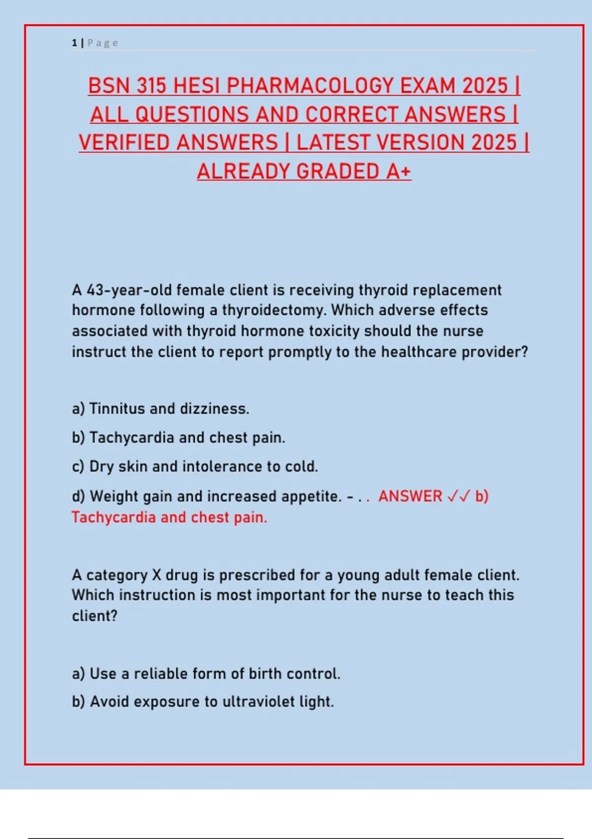 BSN 315 HESI PHARMACOLOGY EXAM 2025 |