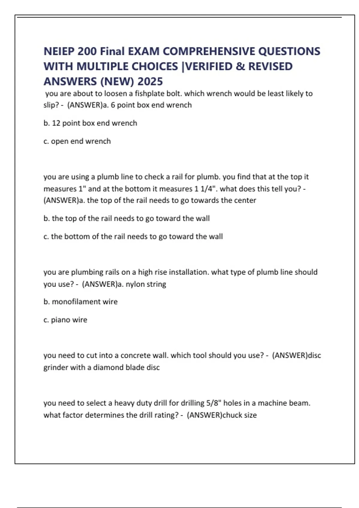 NEIEP 200 Final EXAM COMPREHENSIVE QUESTIONS WITH MULTIPLE CHOICES |VERIFIED & REVISED ANSWERS (NEW) 2025