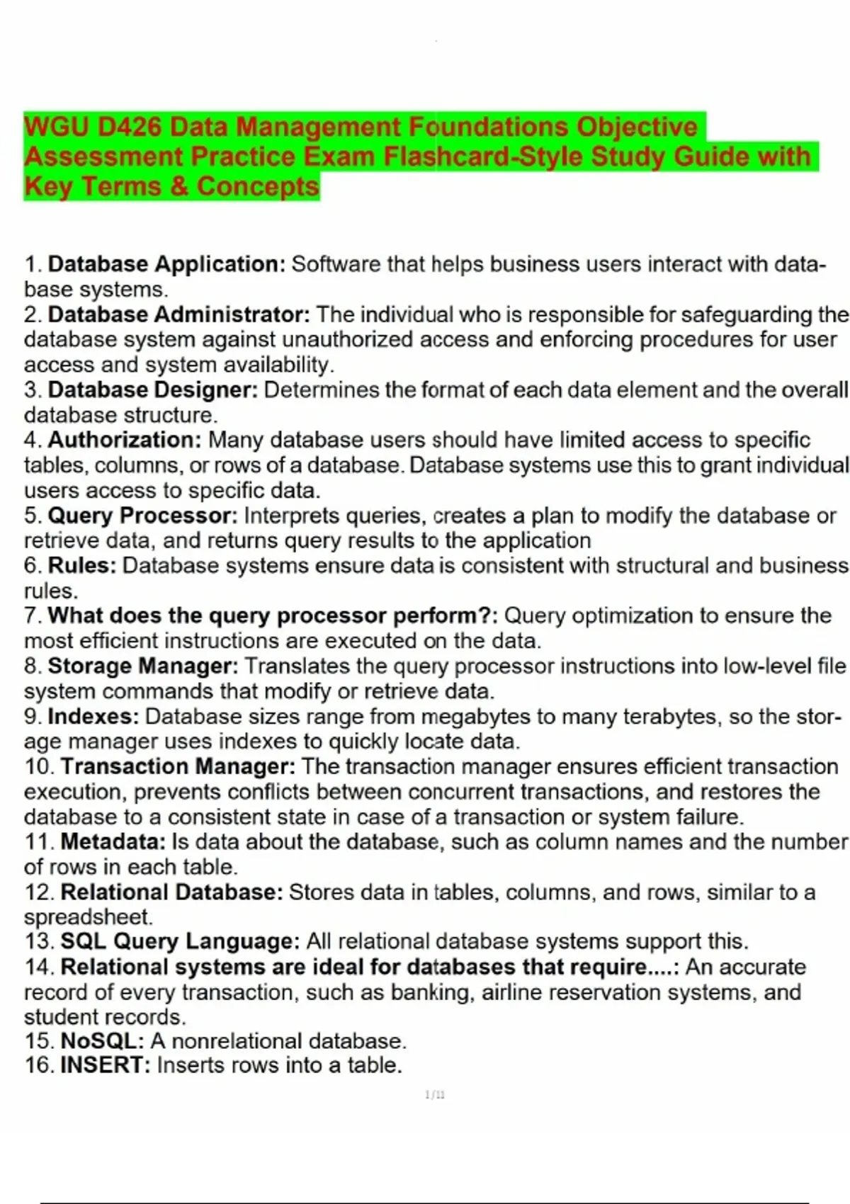 WGU D426 Data Management Foundations Objective Assessment Practice Exam Flashcard-Style Study Guide with Key Terms & C WGU D426 Data Management Foundations Objective Assessment Practice Exam Flashcard-Style Study Guide with Key Terms & C WGU D426 Data Management Foundations Objective Assessment Practice Exam Flashcard-Style Study Guide with Key Terms & C