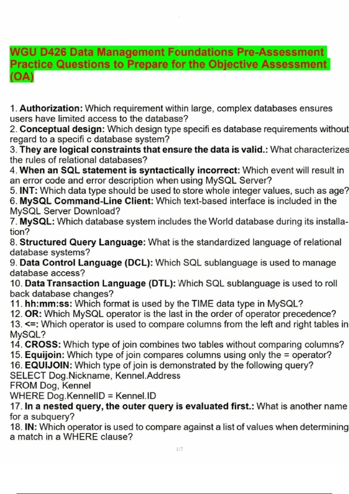 WGU D426 Data Management Foundations Pre-Assessment Practice Questions to Prepare for the Objective Assessment (OA).pdf WGU D426 Data Management Foundations Pre-Assessment Practice Questions to Prepare for the Objective Assessment (OA).pdf WGU D426 Data Management Foundations Pre-Assessment Practice Questions to Prepare for the Objective Assessment (OA).pdf