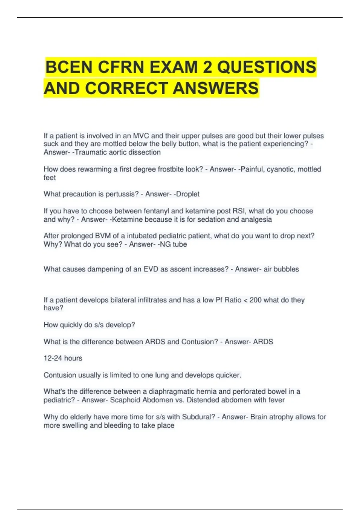What is the difference between ARDS and Contusion? - Answer- ARDS