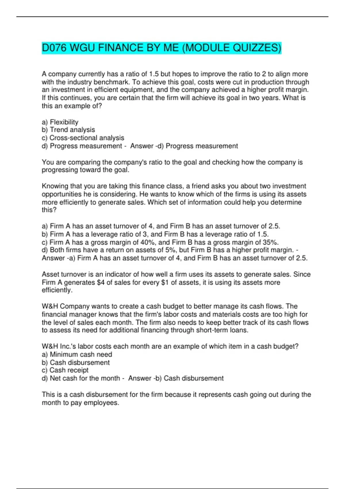D076 WGU FINANCE