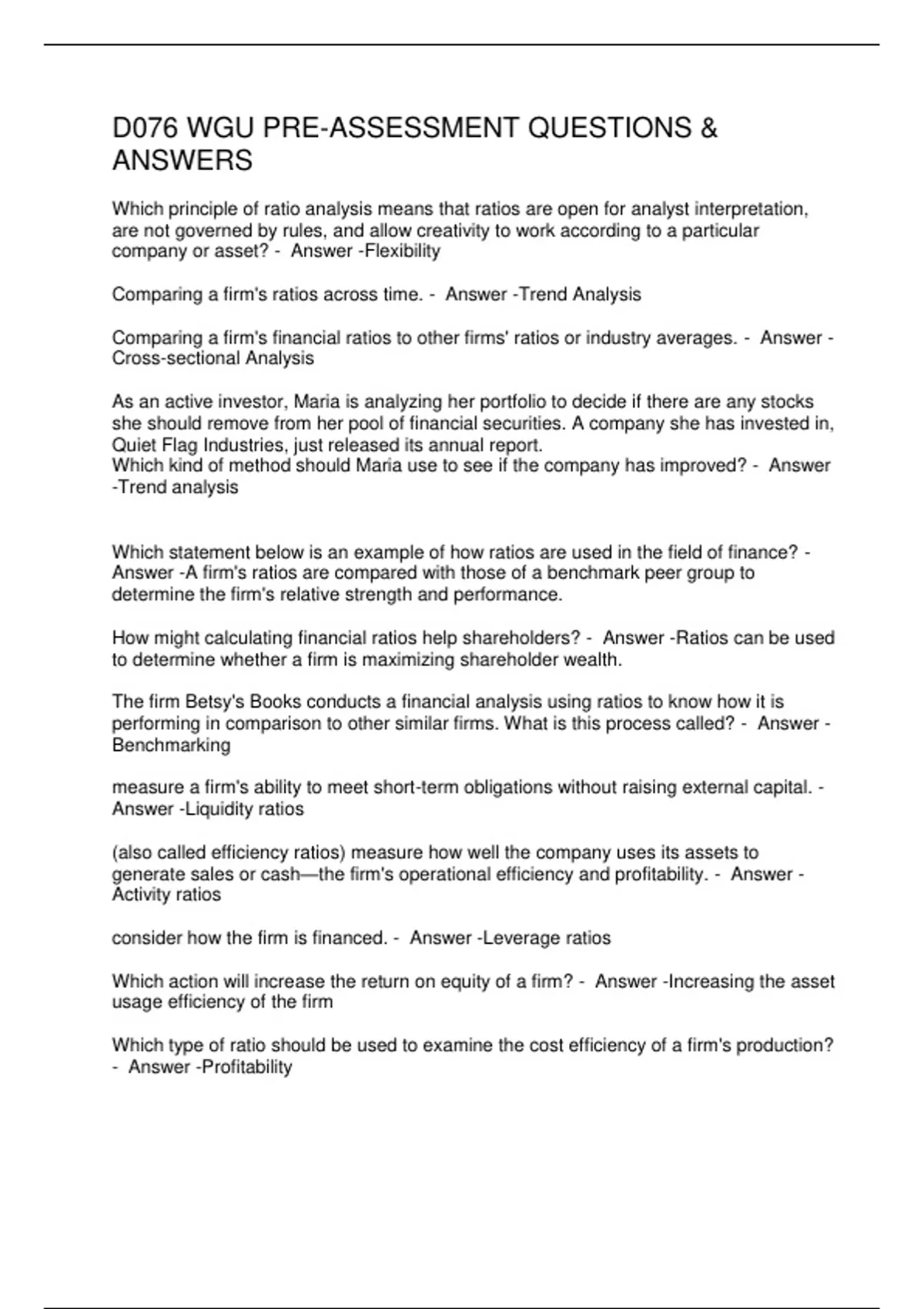 D076 WGU PRE-ASSESSMENT QUESTIONS & ANSWERS