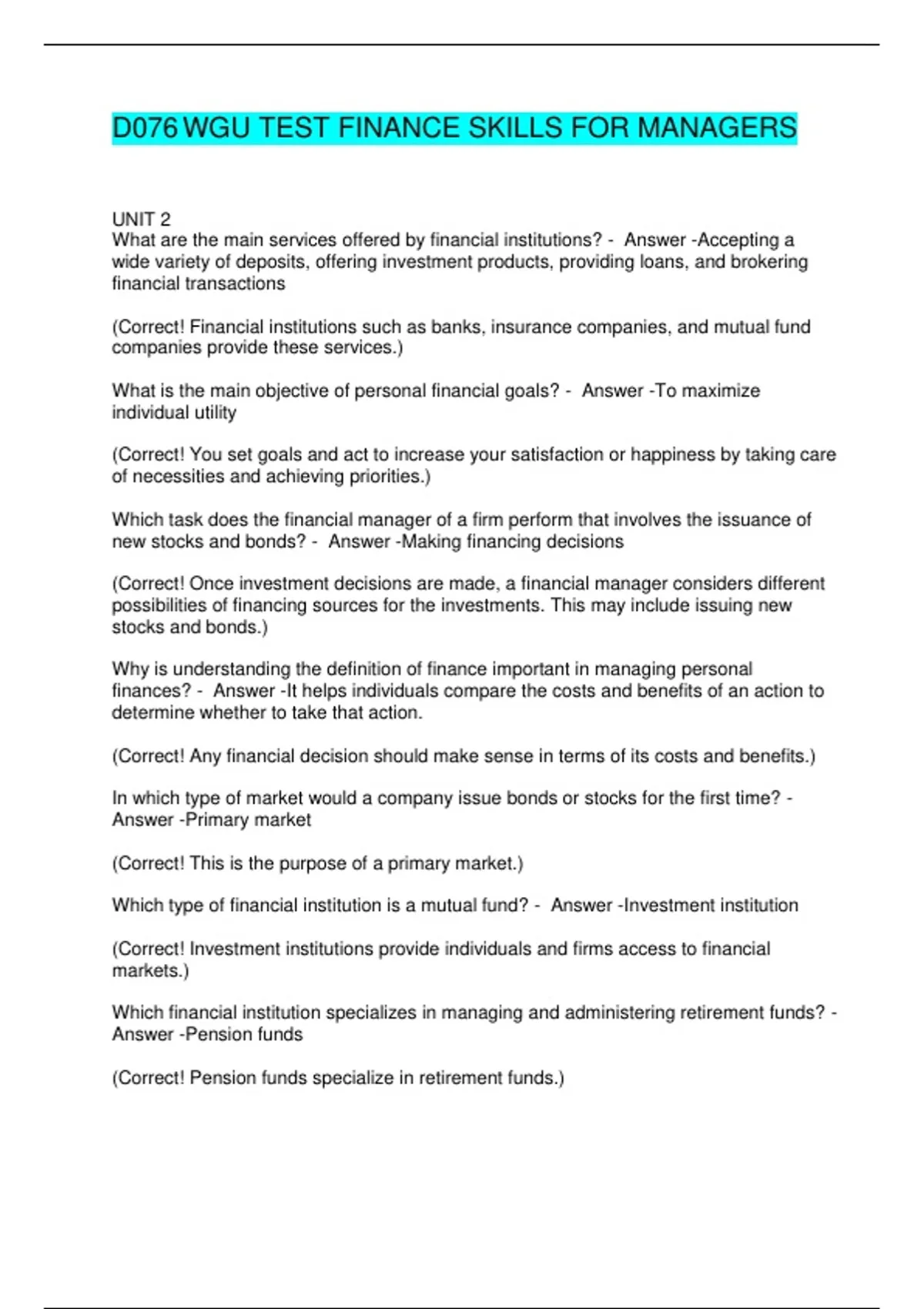 D076 WGU TEST FINANCE SKILLS FOR MANAGERS