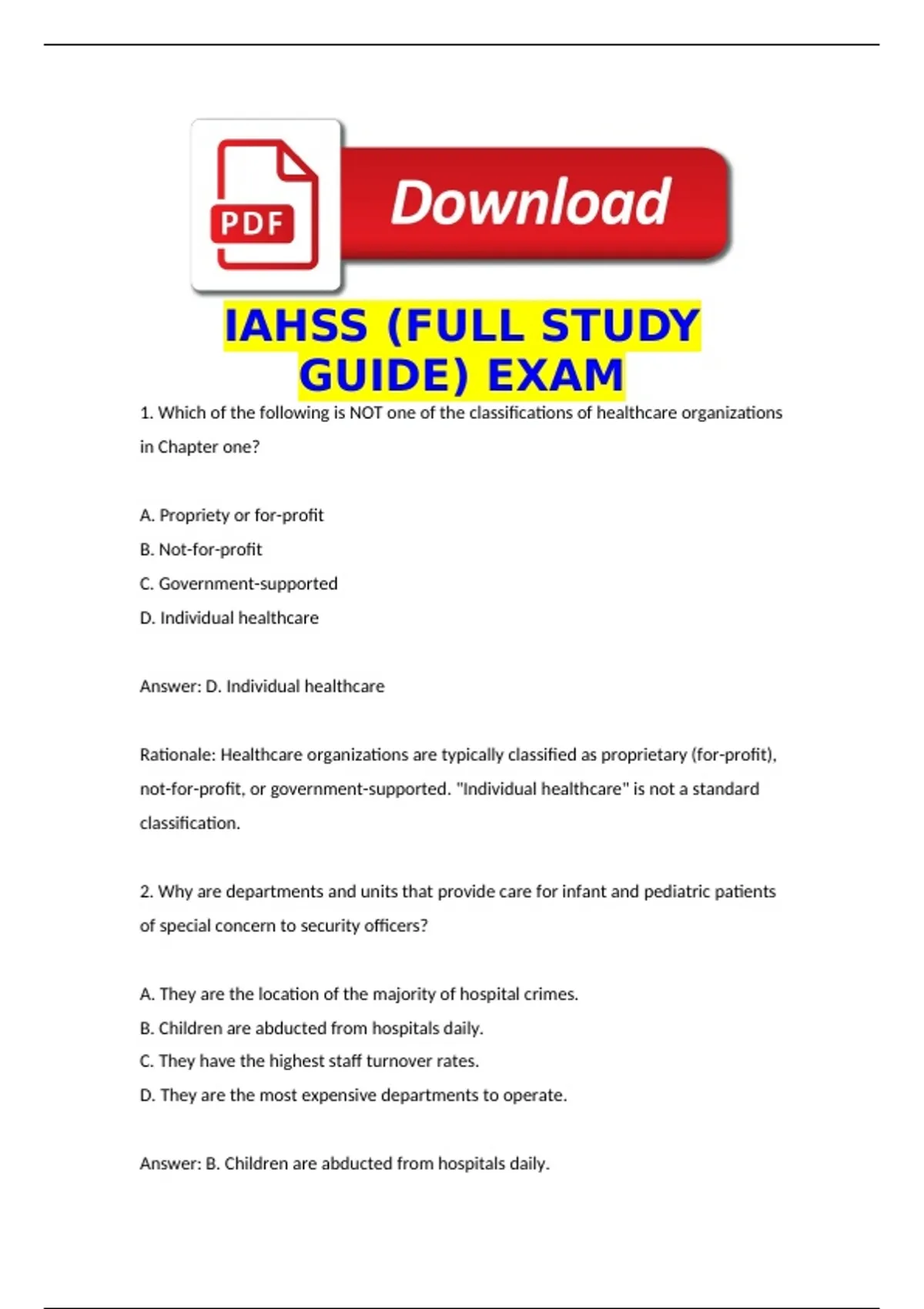 IAHSS (FULL STUDY GUIDE) EXAM QUESTIONS WITH CORRECT ANSWERS AND RATIONALES.