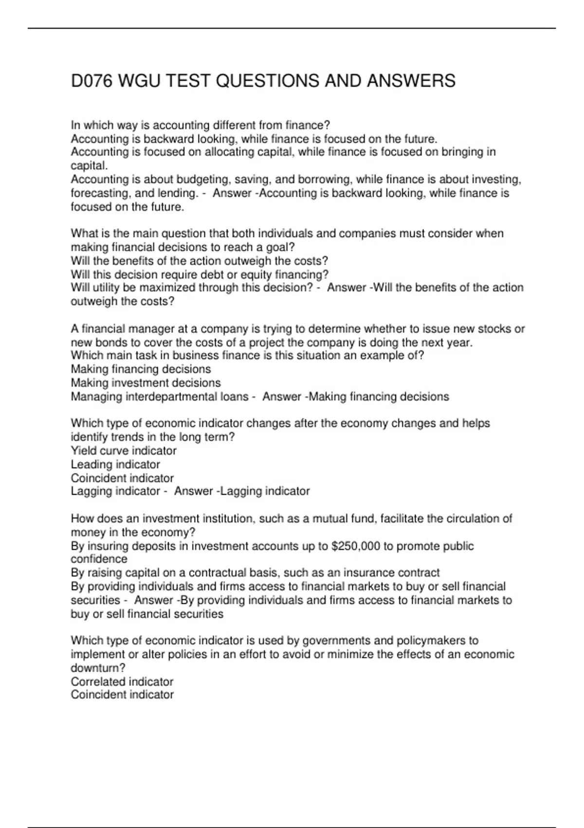 D076 WGU TEST QUESTIONS AND ANSWERS
