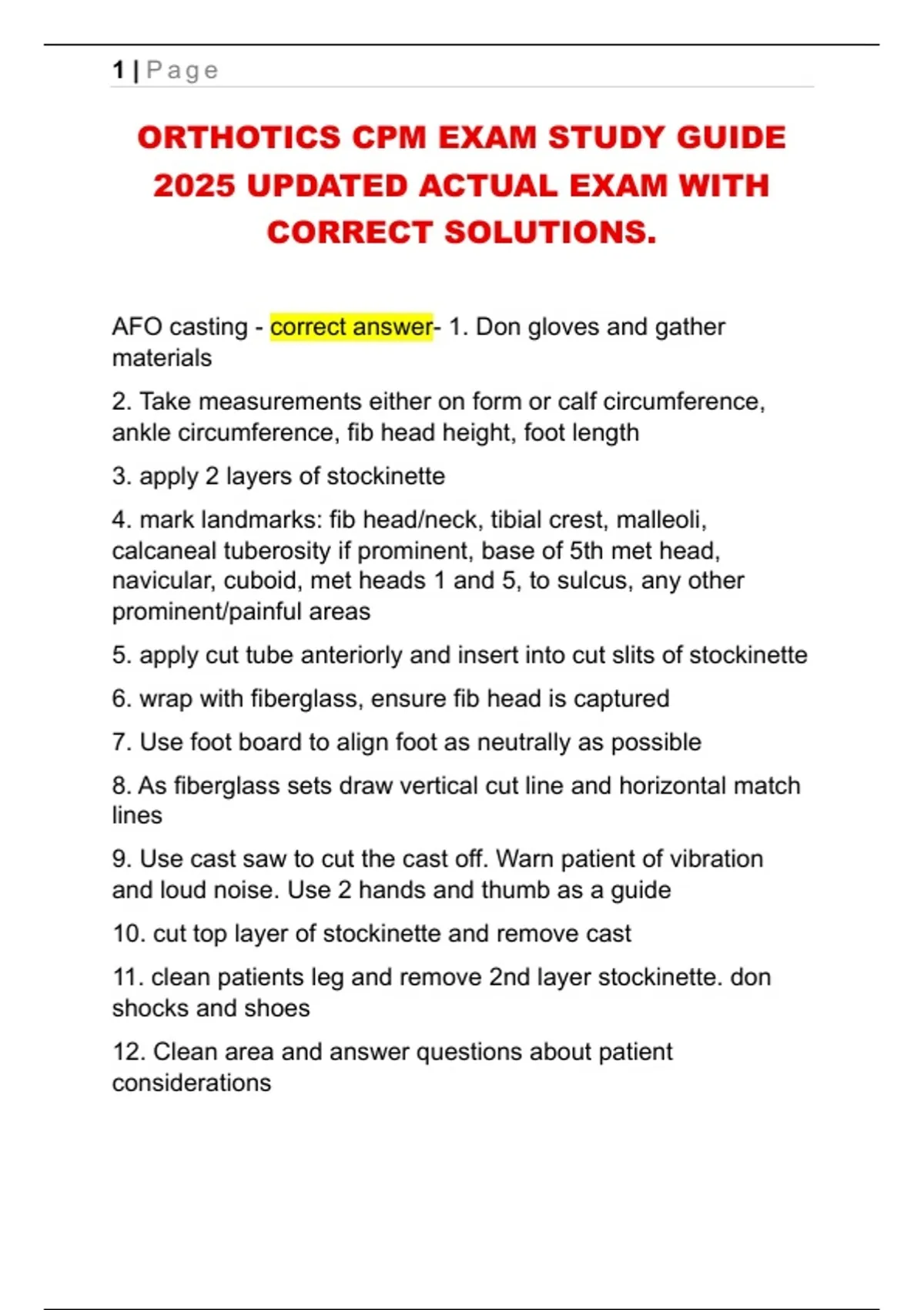 ORTHOTICS CPM EXAM STUDY GUIDE 2025 UPDATED ACTUAL EXAM WITH CORRECT SOLUTIONS.