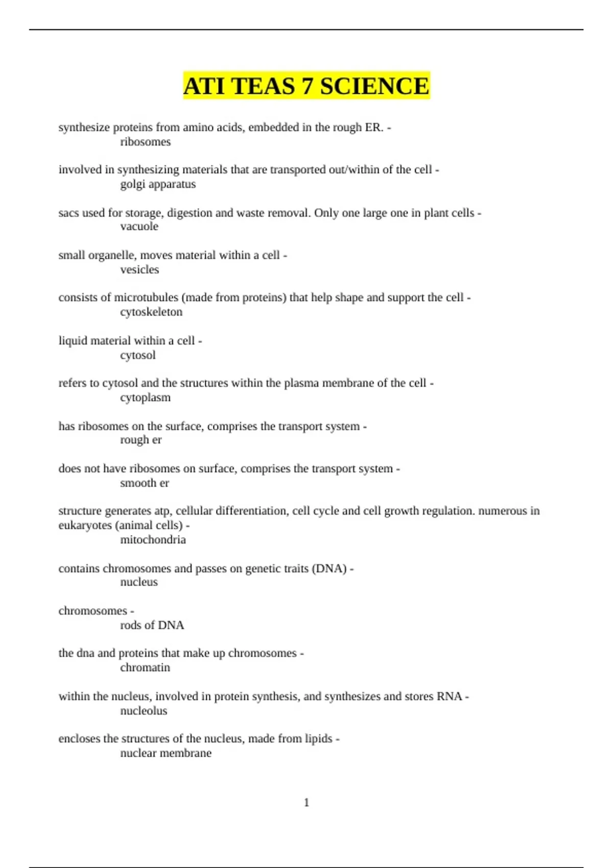 ATI TEAS 7 SCIENCE