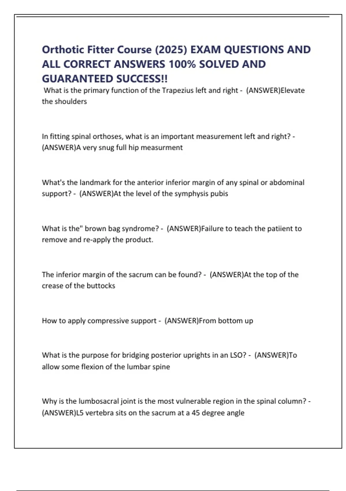Orthotic Fitter Course (2025) EXAM QUESTIONS AND