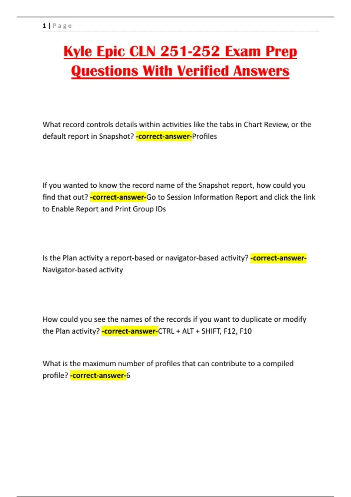 Kyle Epic CLN 251-252 Exam Prep