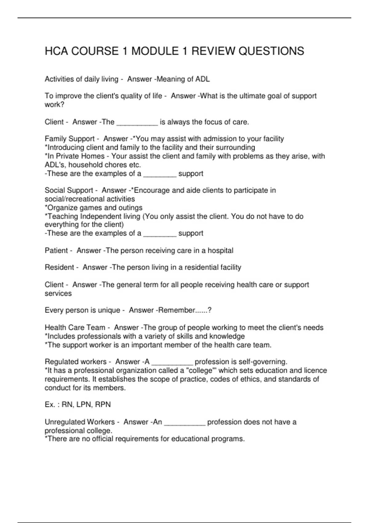 HCA COURSE 1 MODULE 1 REVIEW QUESTIONS