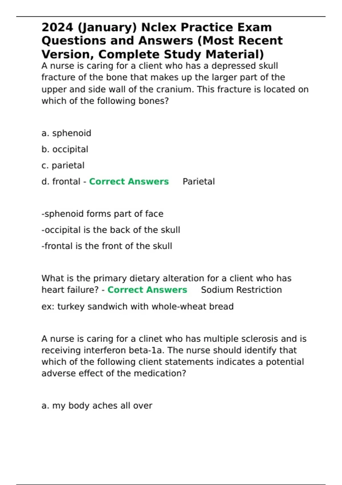 ,2024 (January) Nclex Practice Exam