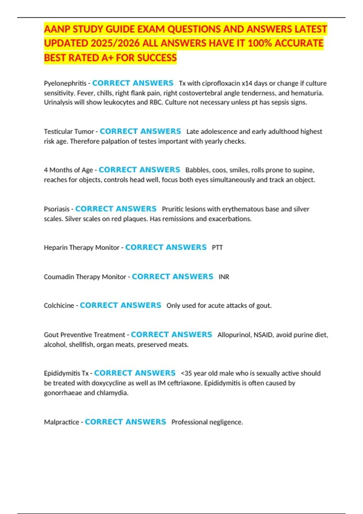 AANP STUDY GUIDE EXAM QUESTIONS AND ANSWERS LATEST UPDATED 2025/2026 ALL ANSWERS HAVE IT 100% ACCURATE BEST RATED A+ FOR SUCCESS