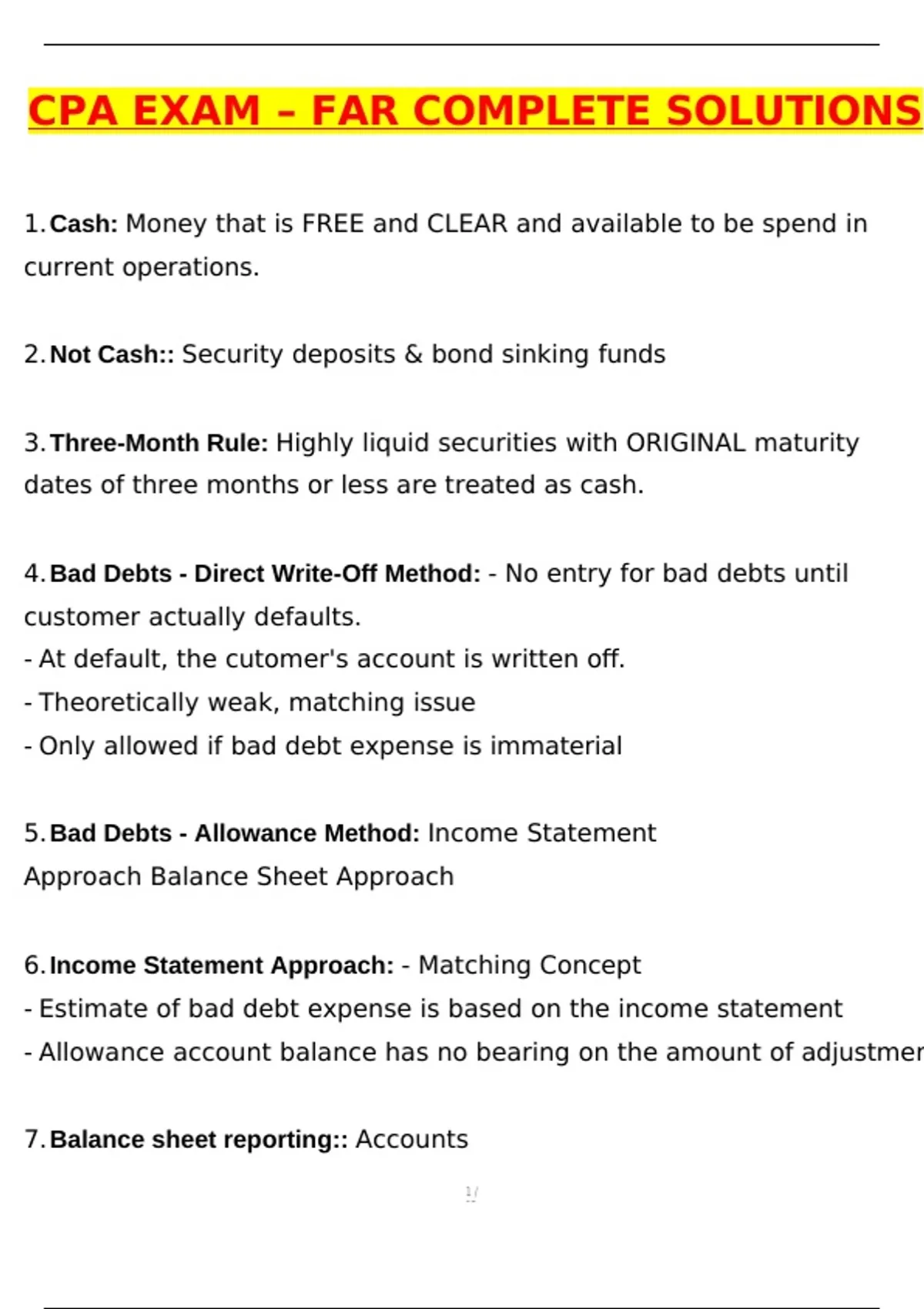 1.Cash: Money that is FREE and CLEAR and available to be spend in