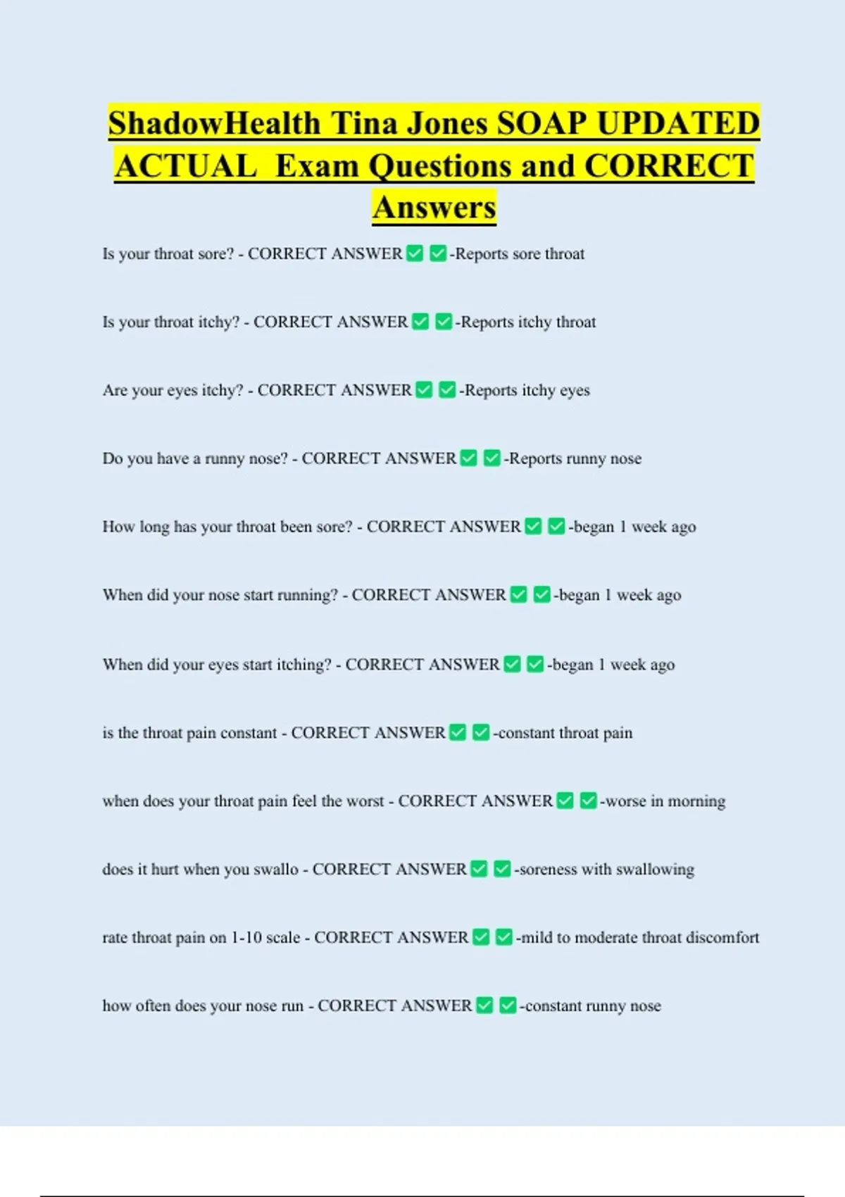 How long has your throat been sore? - CORRECT ANSWER -began 1 week ago