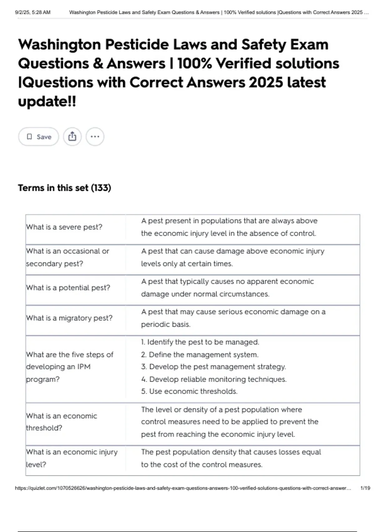 , 9/2/25, 5:28 AM Washington Pesticide Laws and Safety Exam Questions & Answers | 100% Verified solutions |Questions with Correct Answers 2025 …
