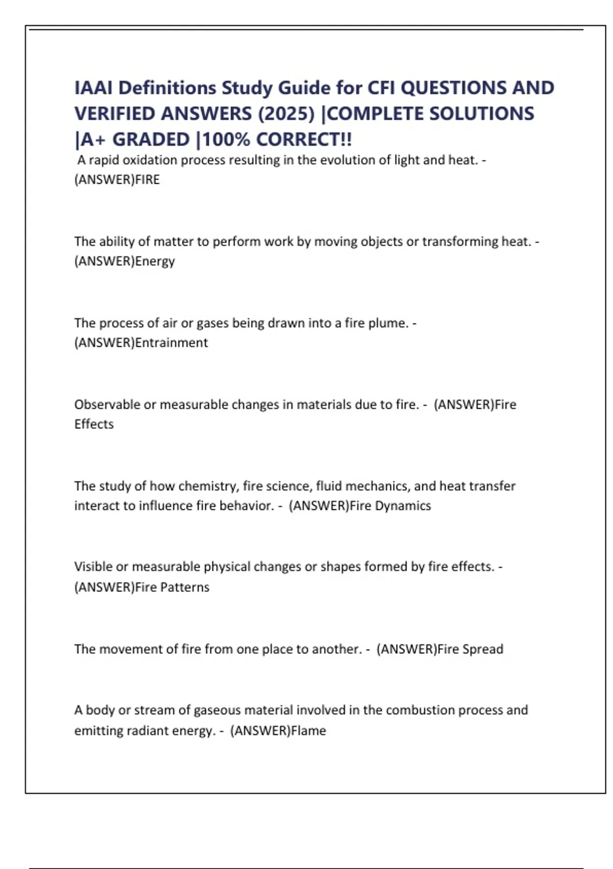 IAAI Definitions Study Guide for CFI QUESTIONS AND