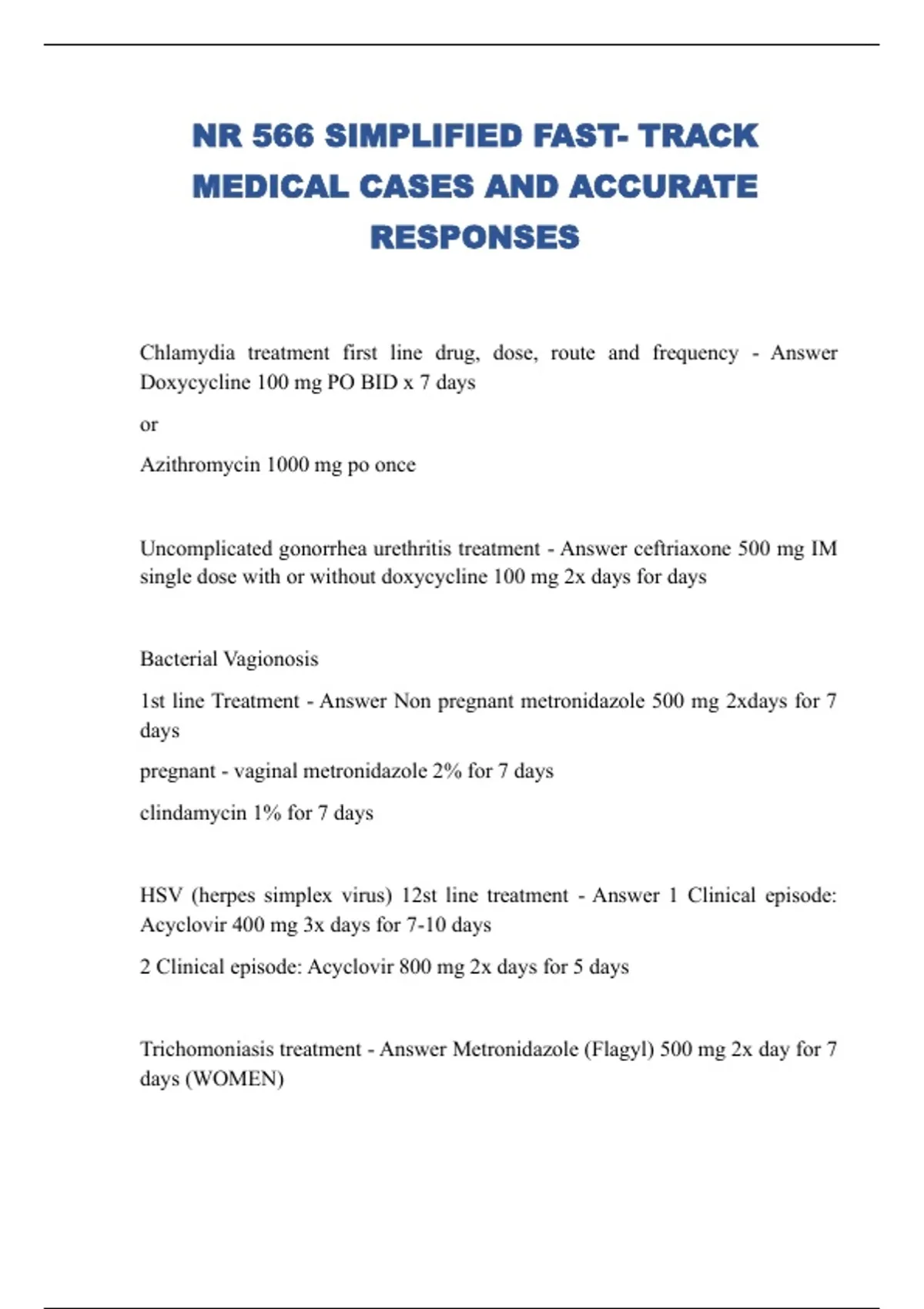 NR 566 SIMPLIFIED FAST- TRACK MEDICAL CASES AND ACCURATE RESPONSES