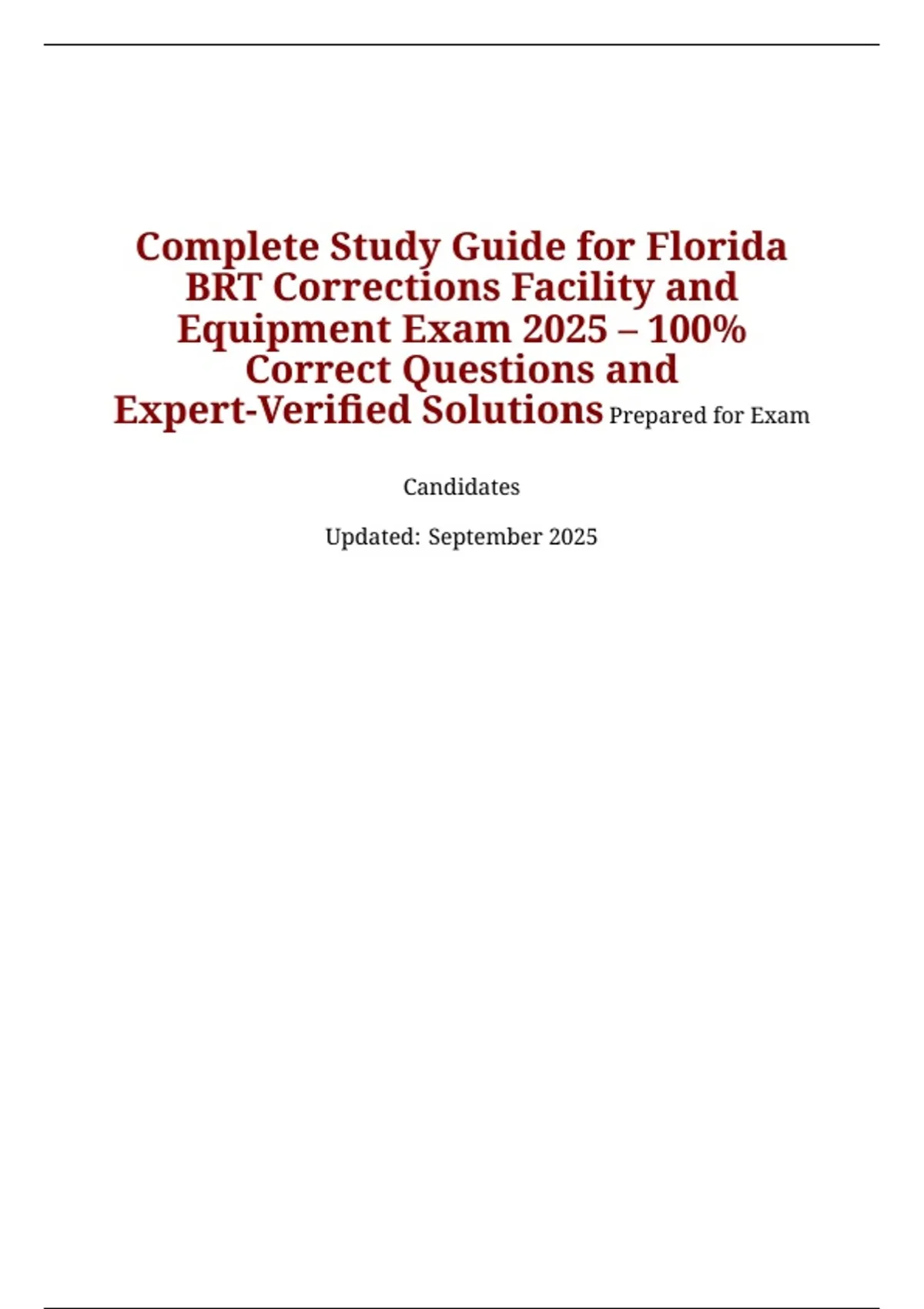 Complete Study Guide for Florida BRT Corrections Facility and Equipment Exam 2025 – 100% Correct Questions and Expert-Verified Solutions
