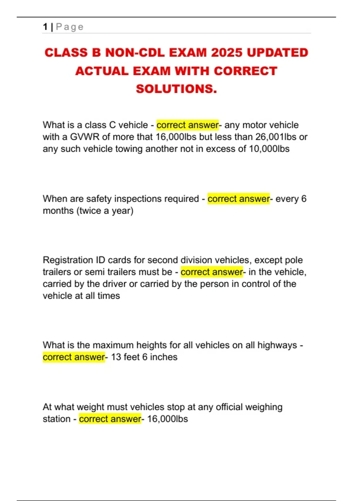 CLASS B NON-CDL EXAM 2025 UPDATED