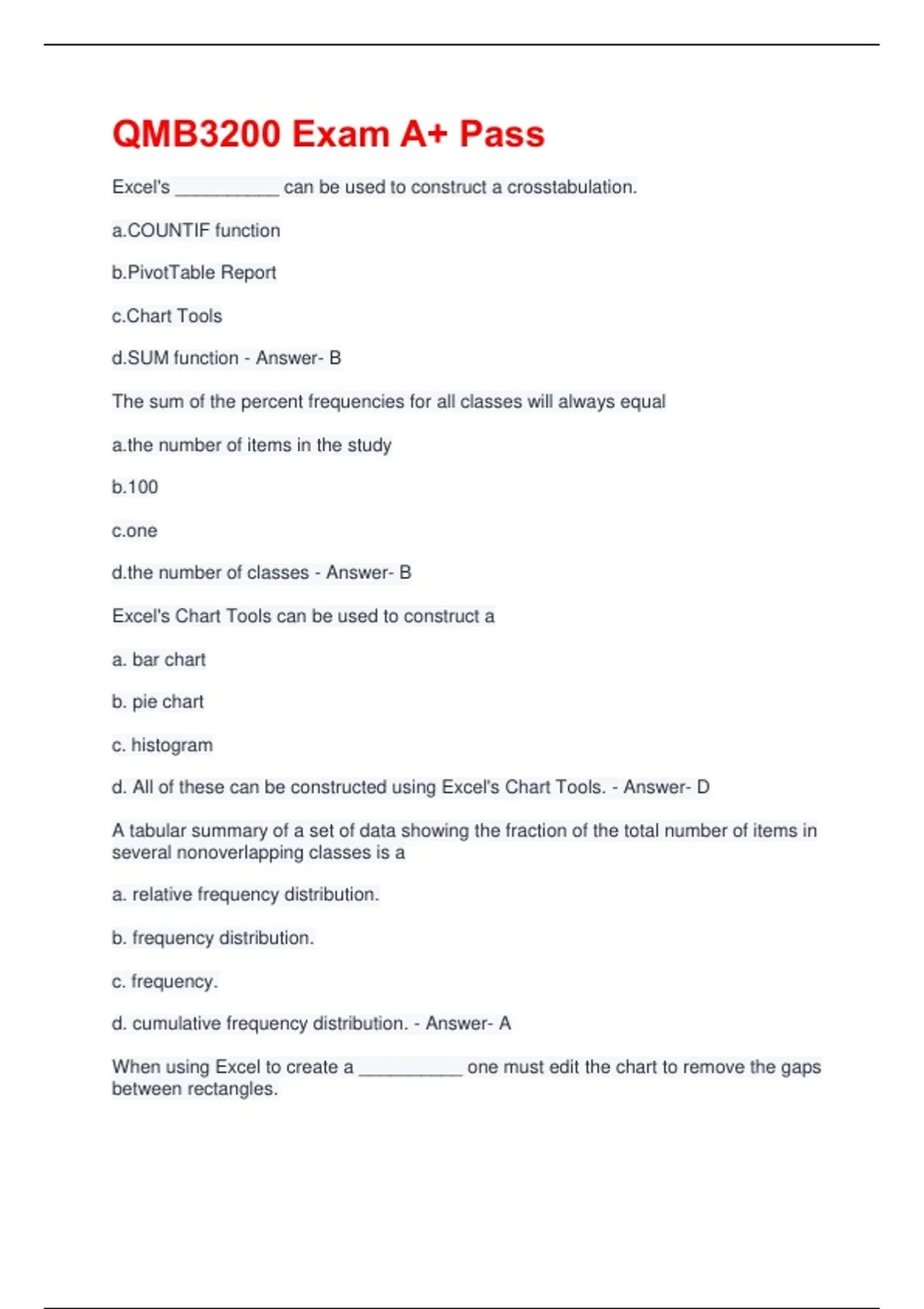 d. cumulative frequency distribution. - Answer- A