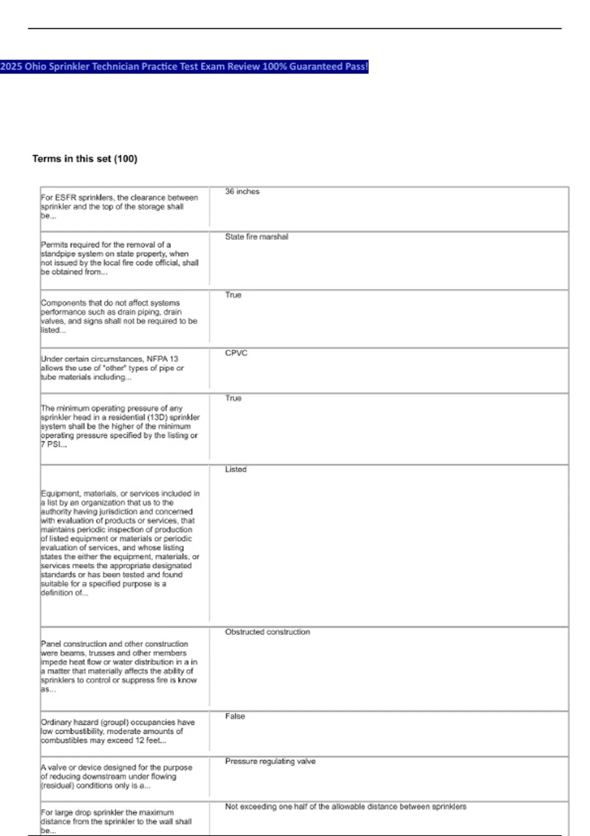 2025 Ohio Sprinkler Technician Practice Test Exam Review 100% Guaranteed Pass!