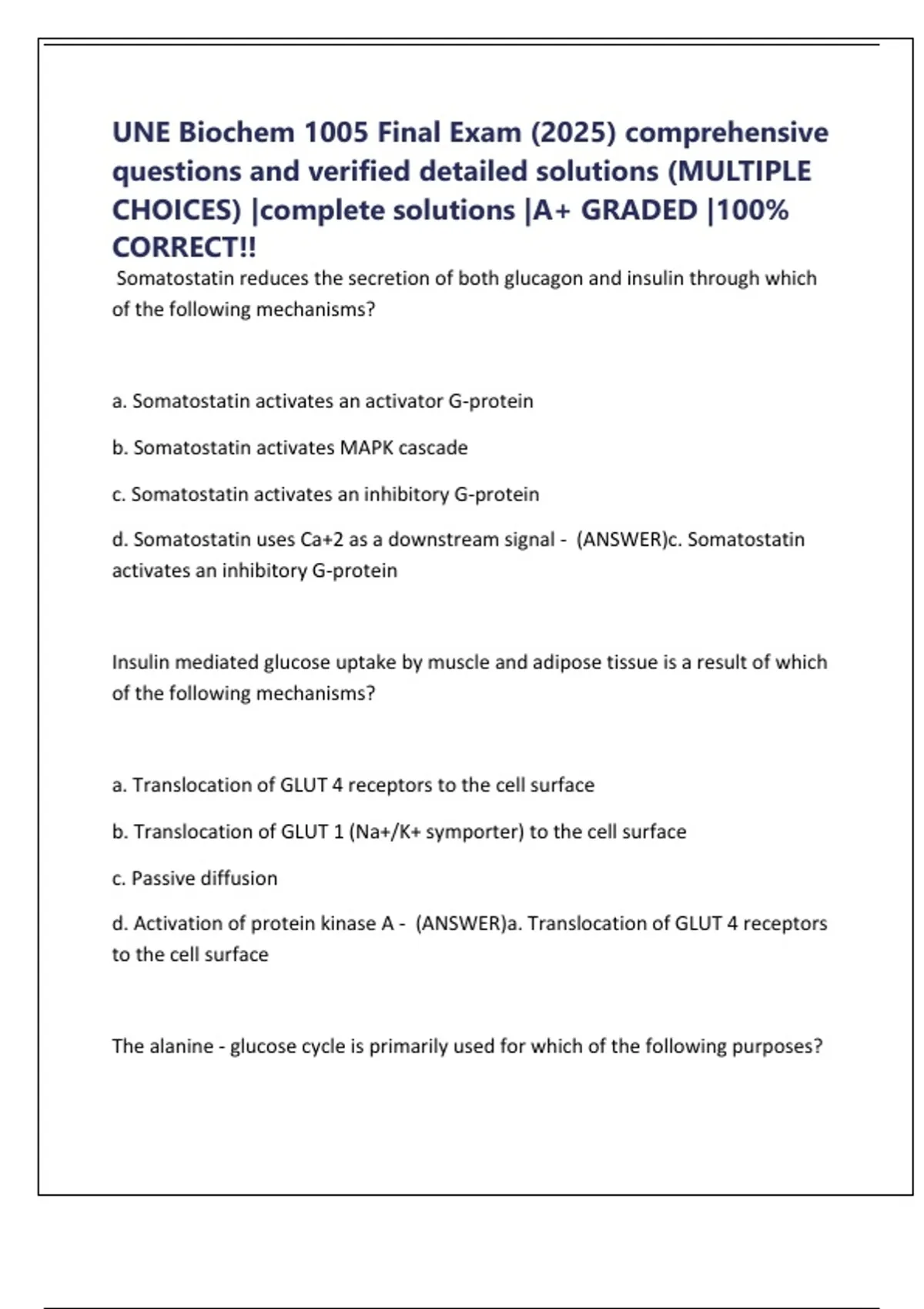 UNE Biochem 1005 Final Exam (2025) comprehensive