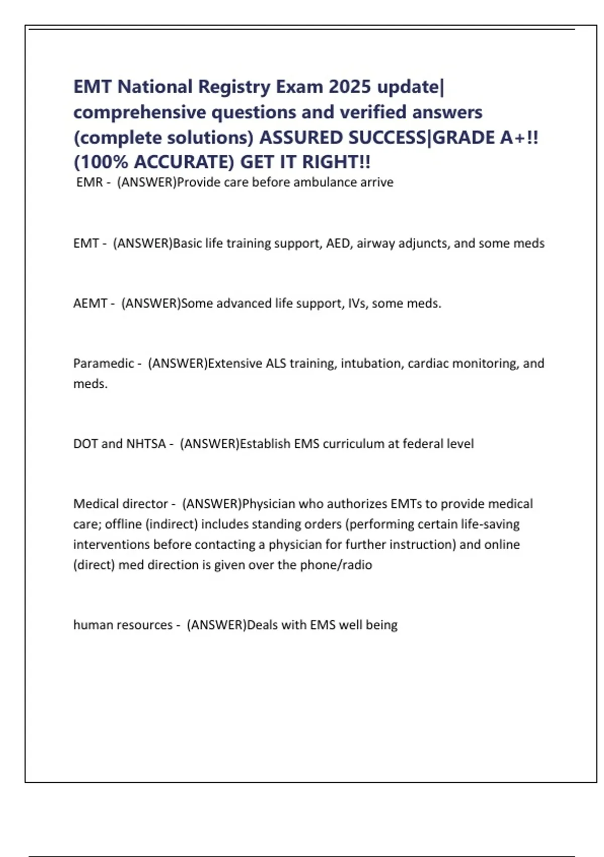 EMT - (ANSWER)Basic life training support, AED, airway adjuncts, and some meds