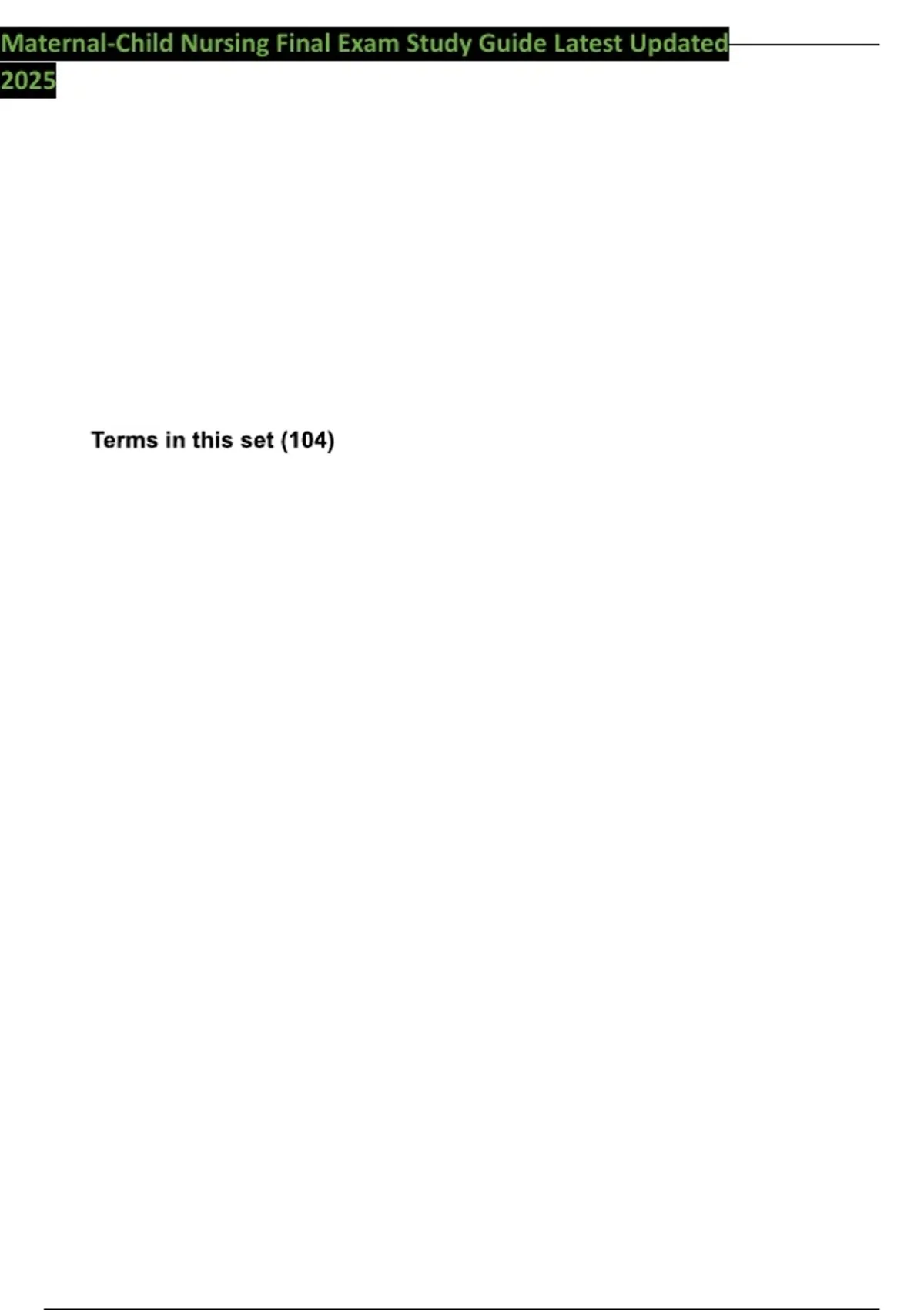 Maternal-Child Nursing Final Exam Study Guide Latest Updated 2025