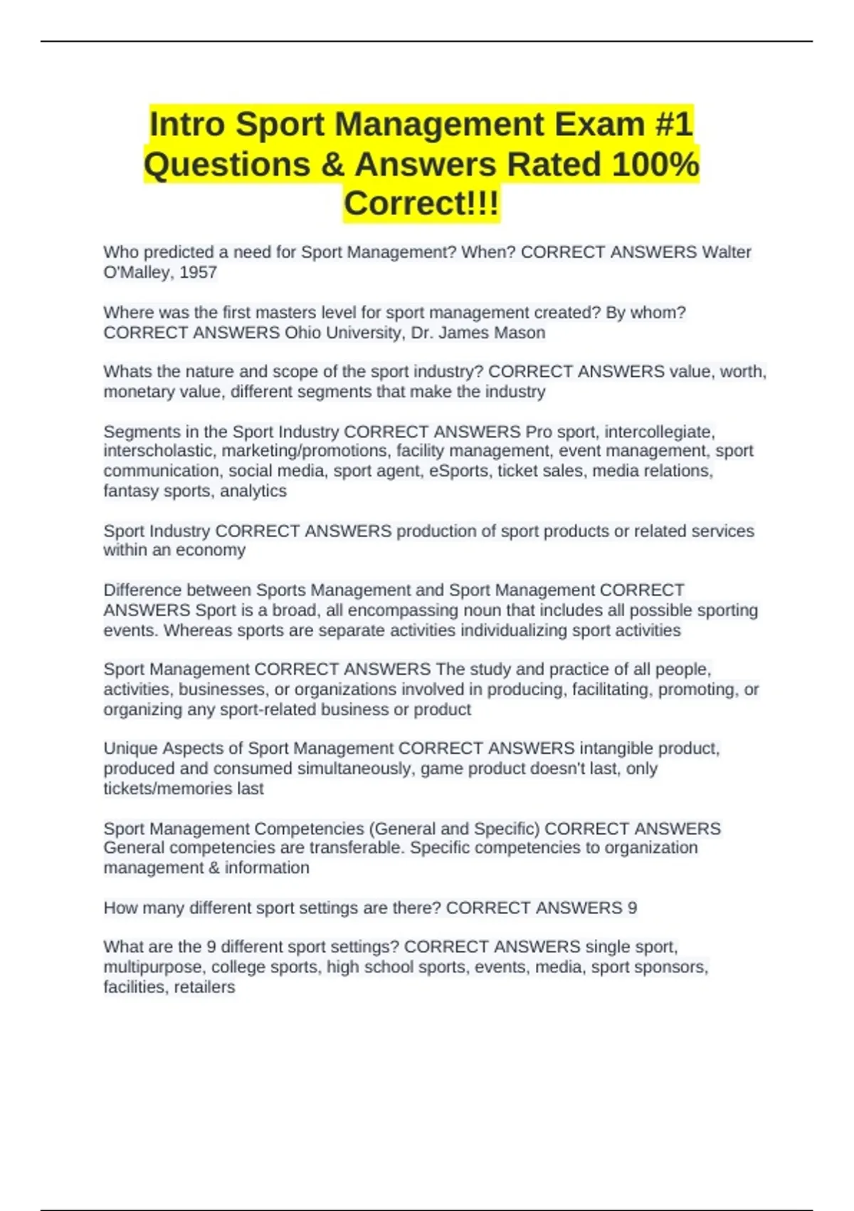 Sport Management CORRECT ANSWERS The study and practice of all people,