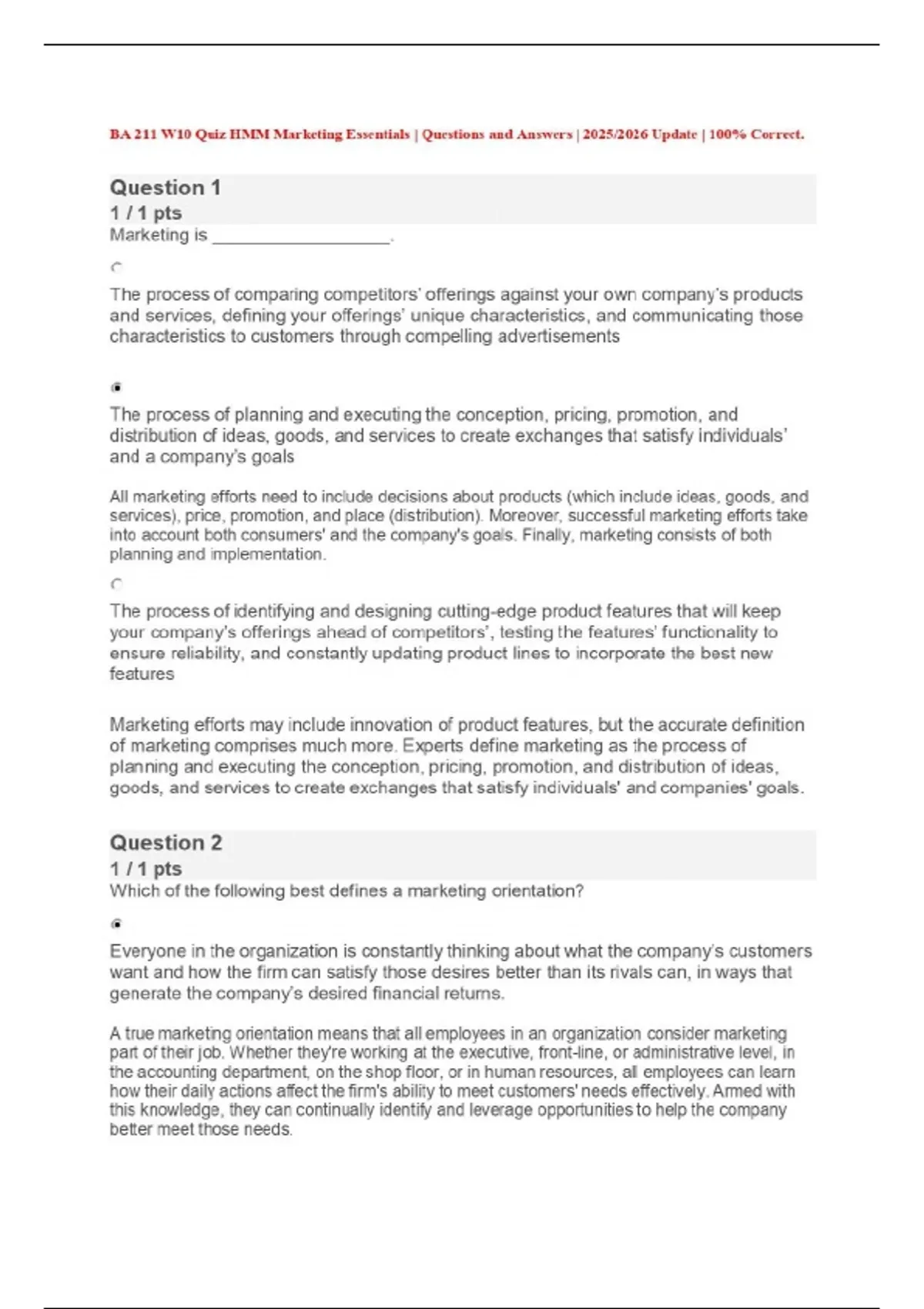BA 211 W10 Quiz HMM Marketing Essentials | Questions and Answers | 2025/2026 Update | 100% Correct.