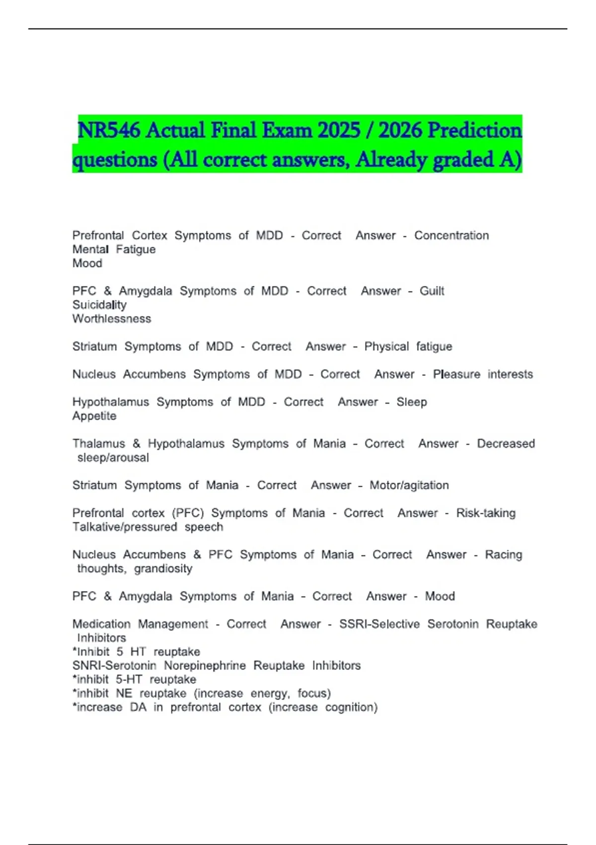 NR 546 Actual Final Exam 2025–2026 | Prediction Questions with All Correct Answers & Graded A PDF | Complete Nurse Practitioner Study Guide