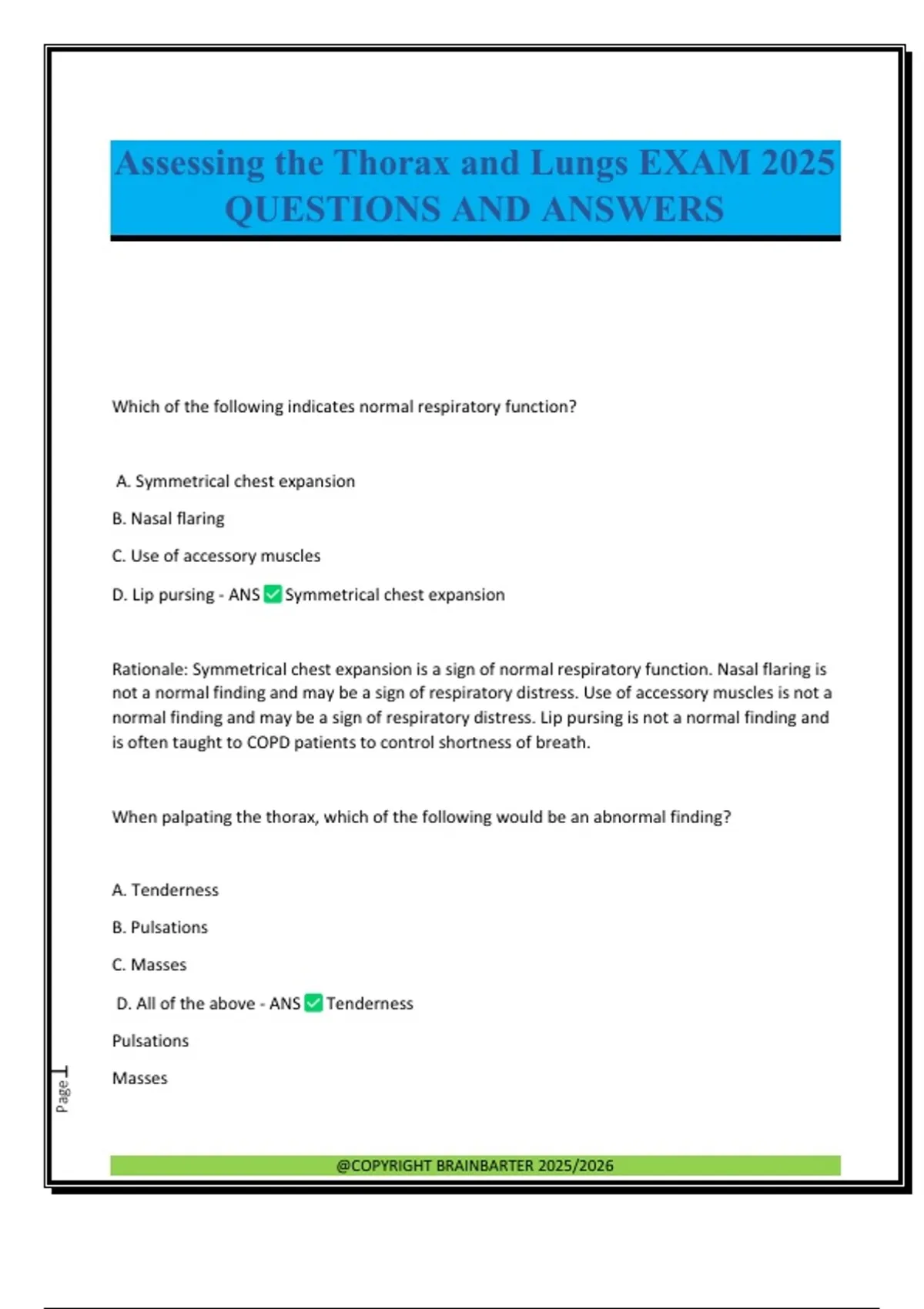 Assessing the Thorax and Lungs EXAM 2025 QUESTIONS AND ANSWERS